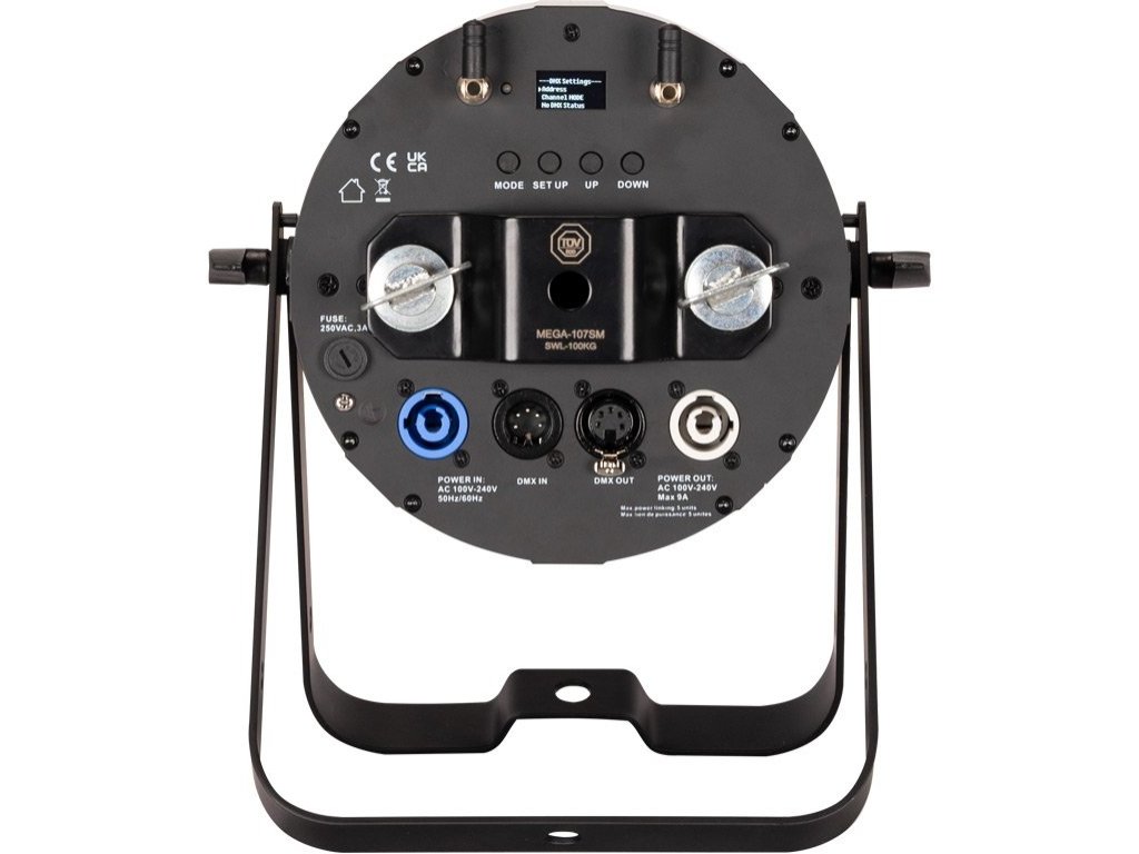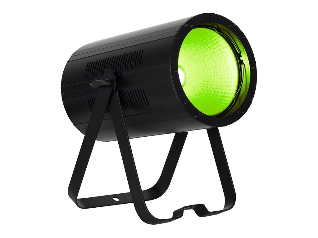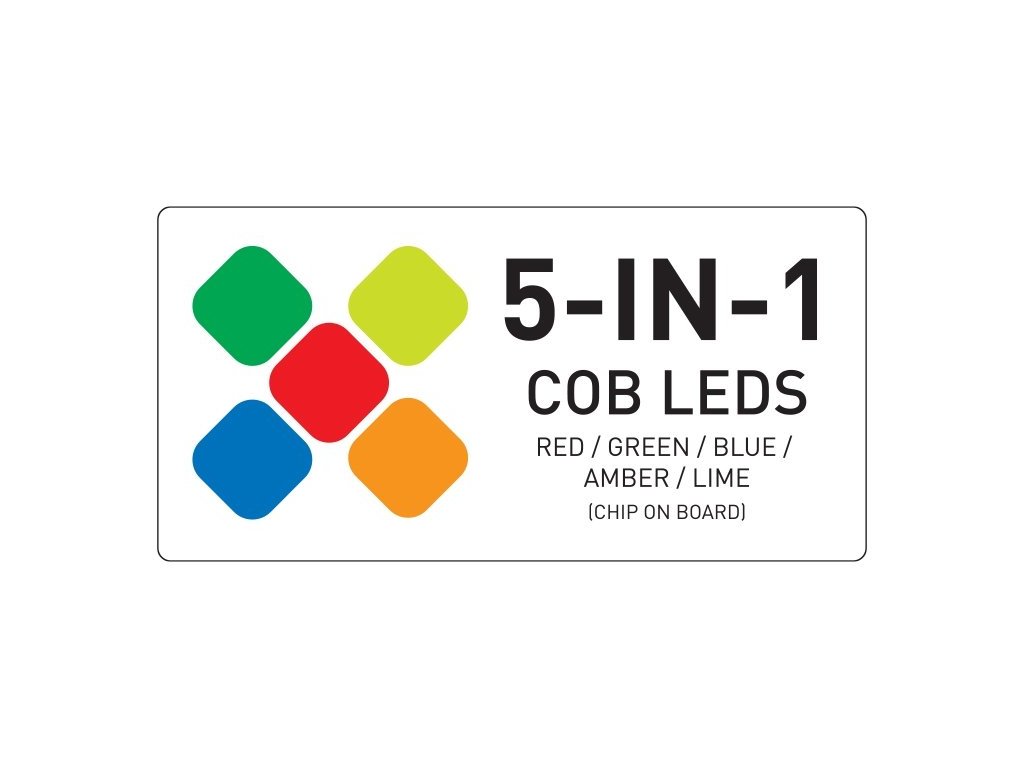 Urządzenie oferuje natywny kąt wiązki 80 stopni i jest dostarczane z zestawem soczewek, umożliwiającym regulację kąta do 40 lub 50 stopni dla węższych wiązek. Dla łatwej integracji z systemami oświetleniowymi dostępne są 5-pinowe gniazda wejściowe i wyjściowe DMX. Dodatkową zaletą jest możliwość podłączenia do trzech jednostek do jednego gniazda, dzięki zabezpieczającym złączom zasilania. W zestawie znajduje się elastyczny uchwyt nożycowy i uchwyt Omega do zawieszania, opcjonalne są klapy do kierowania światła.