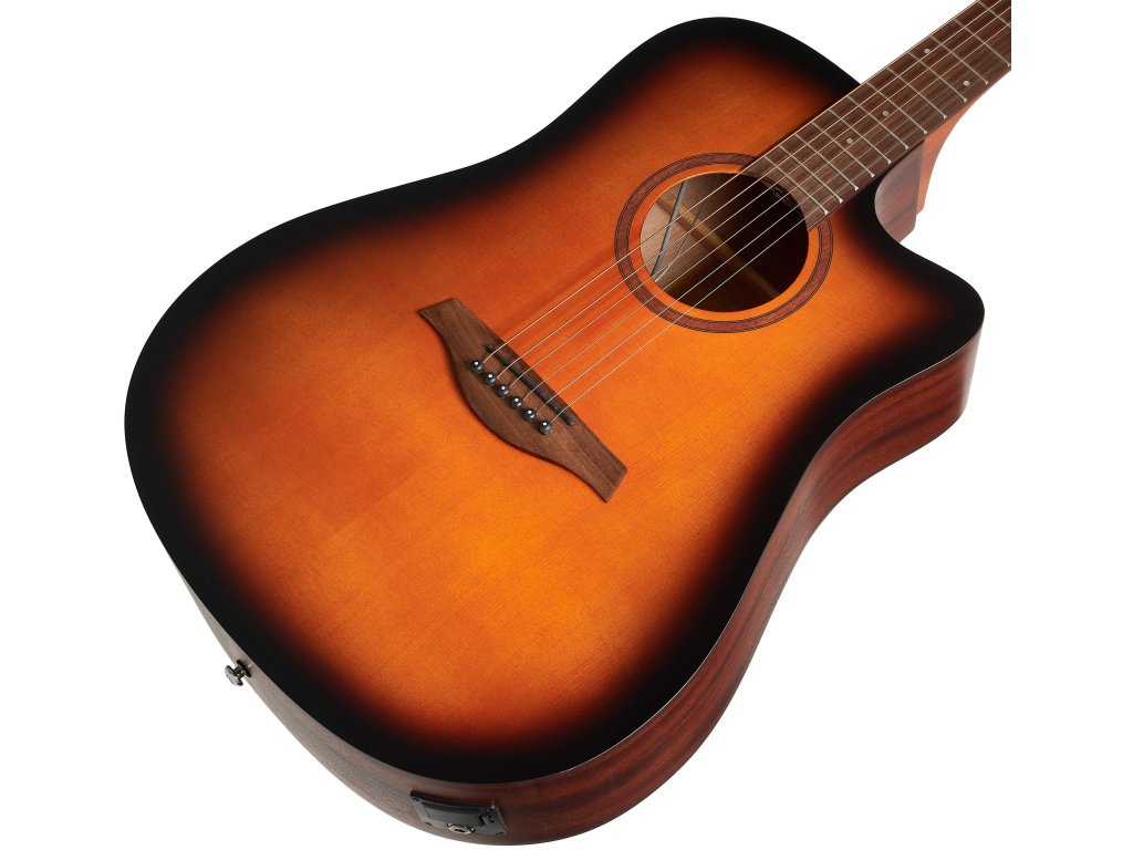 Gitara elektroakustyczna CODY DNCE-SBT oferuje płytę wierzchnią ze sklejki świerkowej, płytę tylną i boki ze sklejki sapele, szyjkę z okoume z przyjemnym profilem C, orzechową podstrunnicę z dwudziestoma progami, orzechowy mostek, chromowane mechaniki stroikowe die-cast oraz wykończenie open-pore black satin.