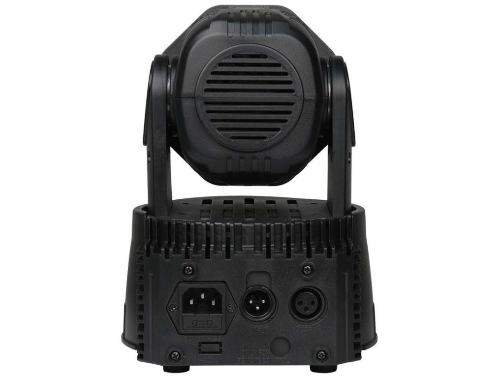 Reflektor sceniczny Light4Me Compact MH 7x8W posiada 3-pinowe wejście i wyjście XLR, które umożliwia sterowanie głowicą LED za pomocą protokołu DMX. Z przodu znajduje się panel sterowania składający się z cyfrowego wyświetlacza i 4 przycisków. Za ich pomocą możemy zmieniać ustawienia w menu, a także wybrać jeden z czterech trybów pracy, które nas interesują:
