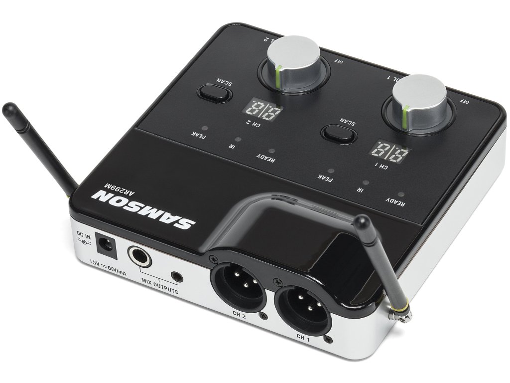 - Wyjścia: 2x symetryczne ze złączem XLR (CH1+CH2) i niesymetryczne ze złączem Jack 6,3mm i 3,3mm (suma obu kanałów)