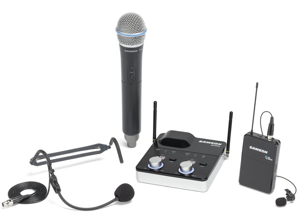 2-kanałowy system premium UHF z profesjonalnym mikrofonem Q8x oraz mikrofonem nagłownym/krawatowym.