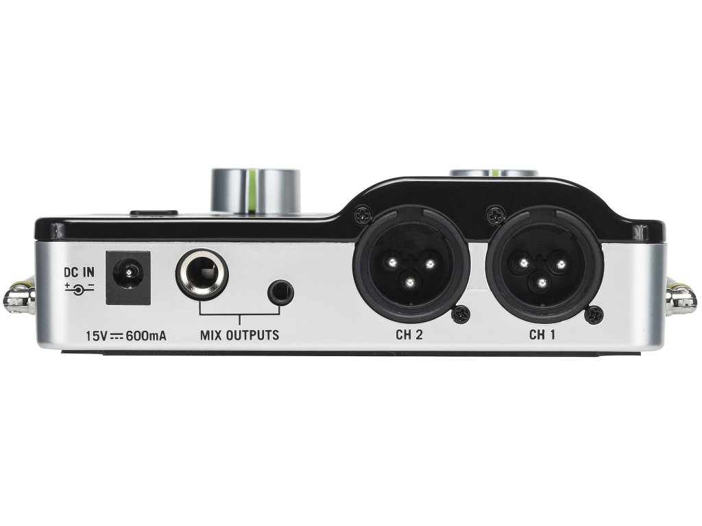 - Wyjścia: 2x symetryczne ze złączem XLR (CH1+CH2) i niesymetryczne ze złączem Jack 6,3mm i 3,3mm (suma obu kanałów)