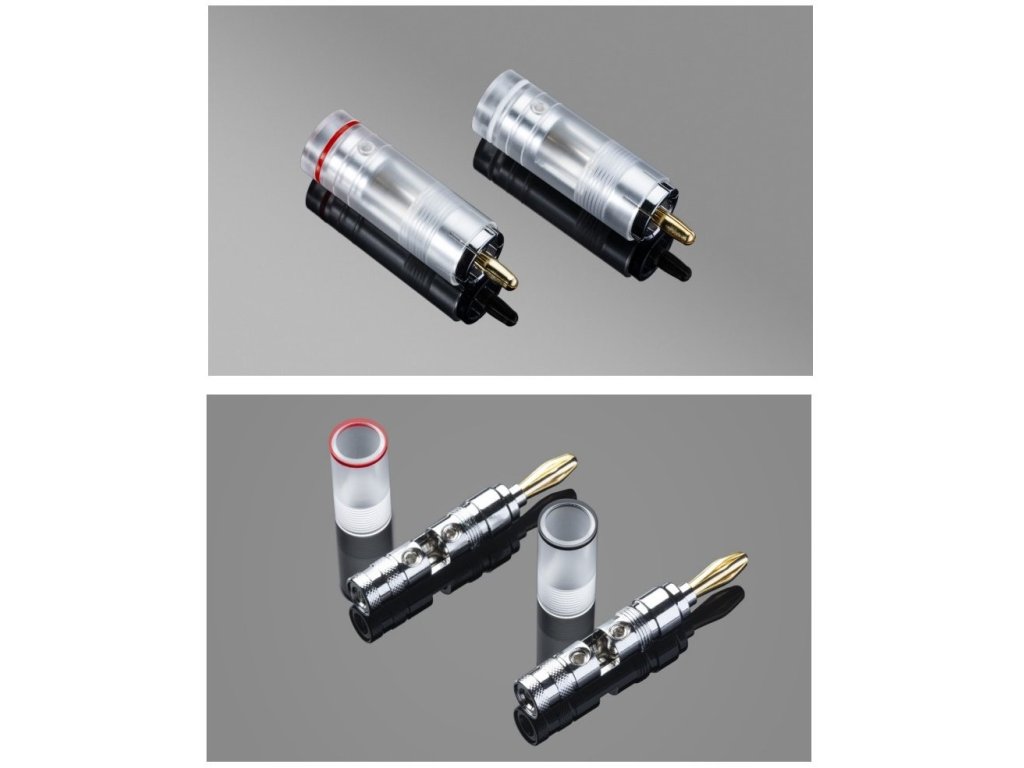 Connect it Line S to bardzo dobrze giętki kabel z miedzianym ekranowaniem. Dwa oddzielnie ekranowane przewody z miedzi beztlenowej 99,9% OFC na kanał są zakończone złączami RCA z pozłacanymi stykami z brązu fosforowego o wysokiej przewodności. Złącza są przystosowane do mocnego kontaktu i na pewno się samoczynnie nie poluzują. Są pozłacane 24-karatowym złotem dla optymalnego przesyłu sygnału i ponadstandardowej odporności na korozję. Jako dielektryk zastosowano termoplastyczny elastomer. Ekranowanie jest w 100% wykonane z miedzi OFC dla efektywnego tłumienia zakłóceń elektromagnetycznych i wysokoczęstotliwościowych.