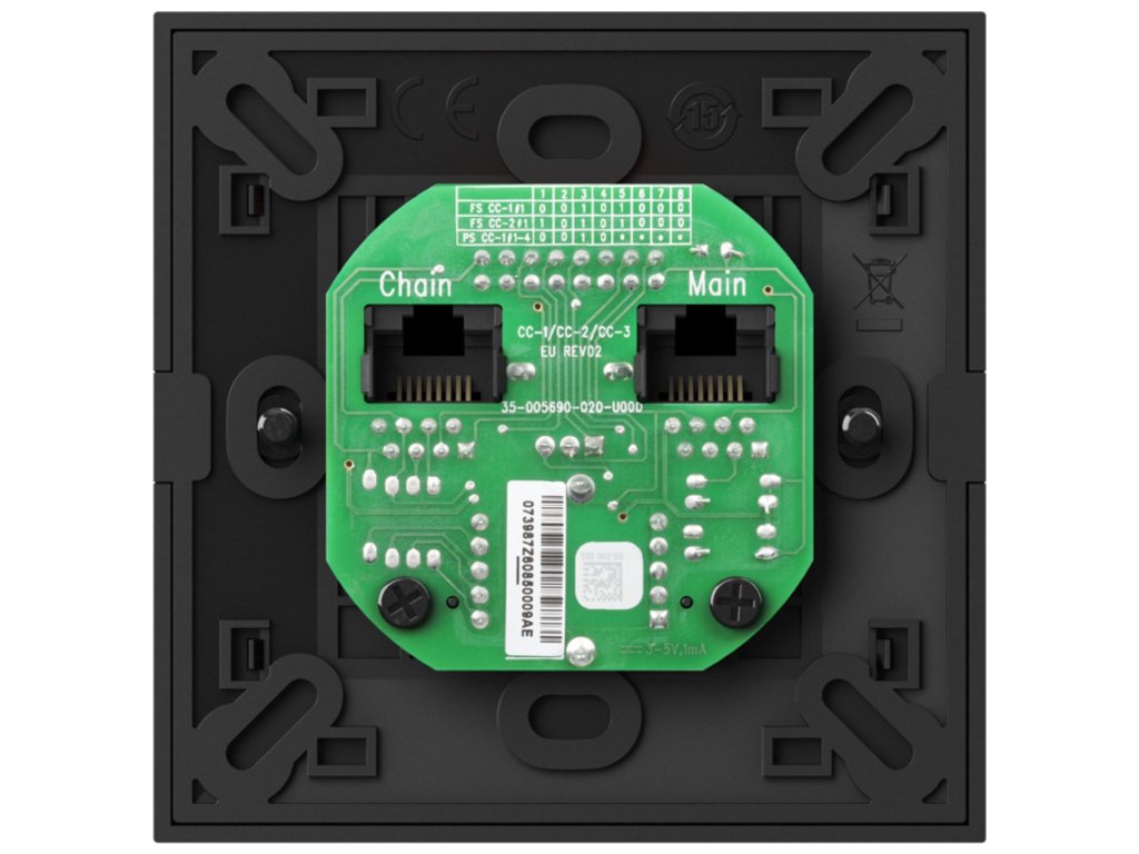 - Sterownik o wymiarach 86 × 86 mm jest dostarczany jako gotowa płyta ścienna.