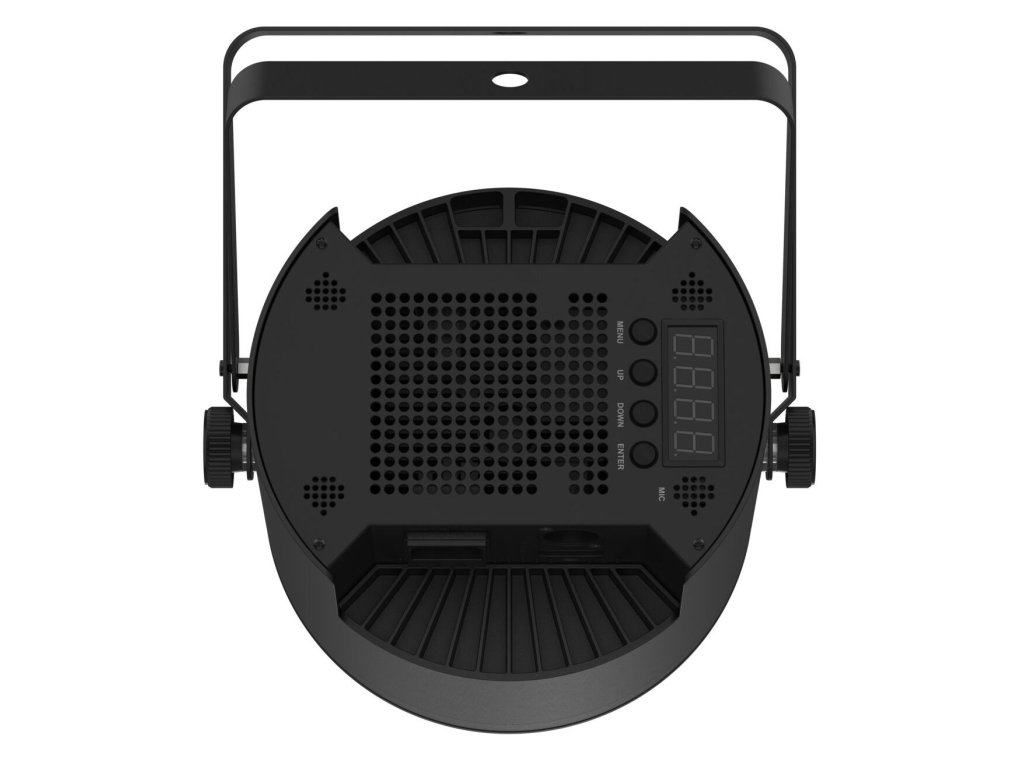- Kompaktowy ultraszerokokątny reflektor LED UV wash PAR o mocy 120 W z technologią COB (Chip-on-Board)