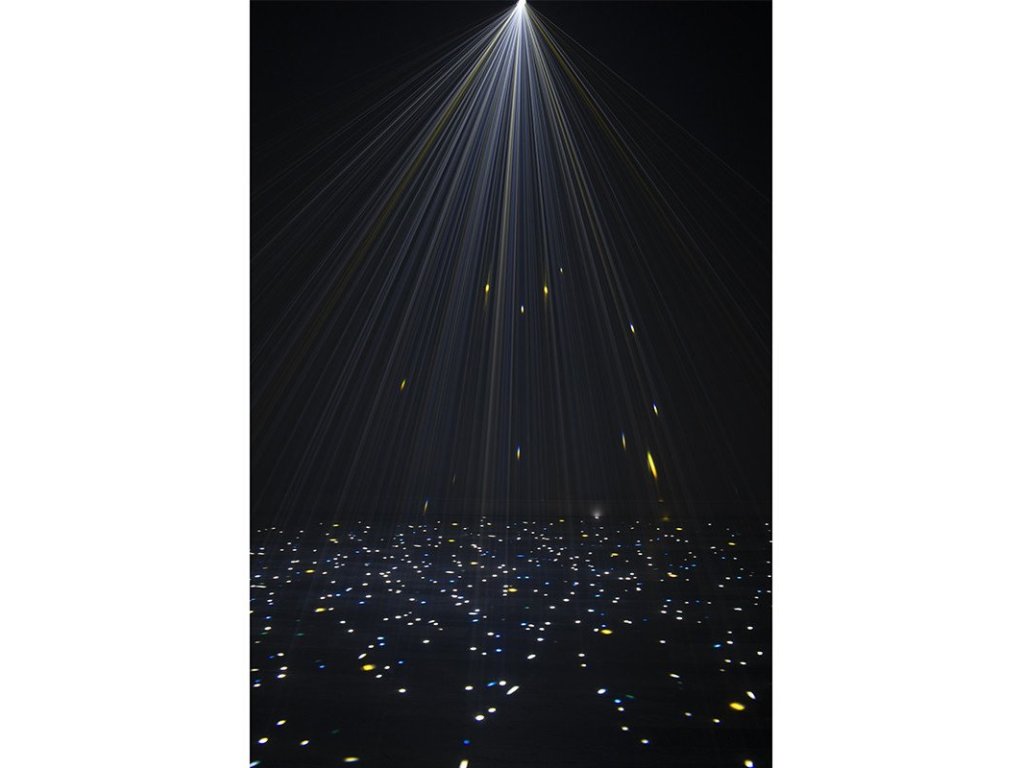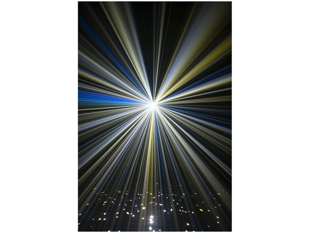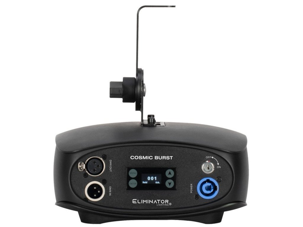 Eliminator Lighting Cosmic Burst to futurystyczny efekt Moonflower o wysokiej wydajności, zasilany modułem laserowym o mocy 10 W. Tworzy setki białych, żółtych, zielonych i niebieskich promieni światła, które obracają się tam i z powrotem z dwóch niezależnych talerzy lustrzanych. Dzięki masywnemu rozproszeniu wiązki idealnie nadaje się do projekcji na sufitach i ścianach w klubach nocnych, lodowiskach, centrach rozrywki, na scenach i podczas występów na żywo.