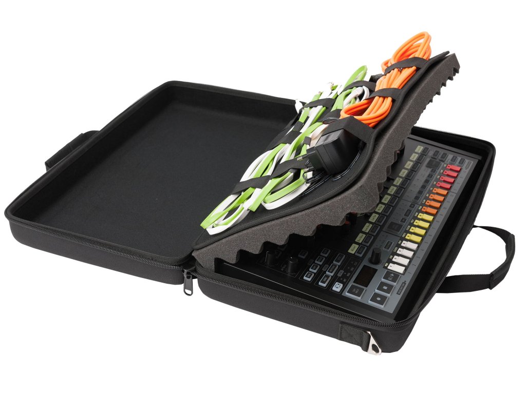 - Zawiera wyjmowaną wyściółkę z pianki chroniącą pokrętła, fadery i pady