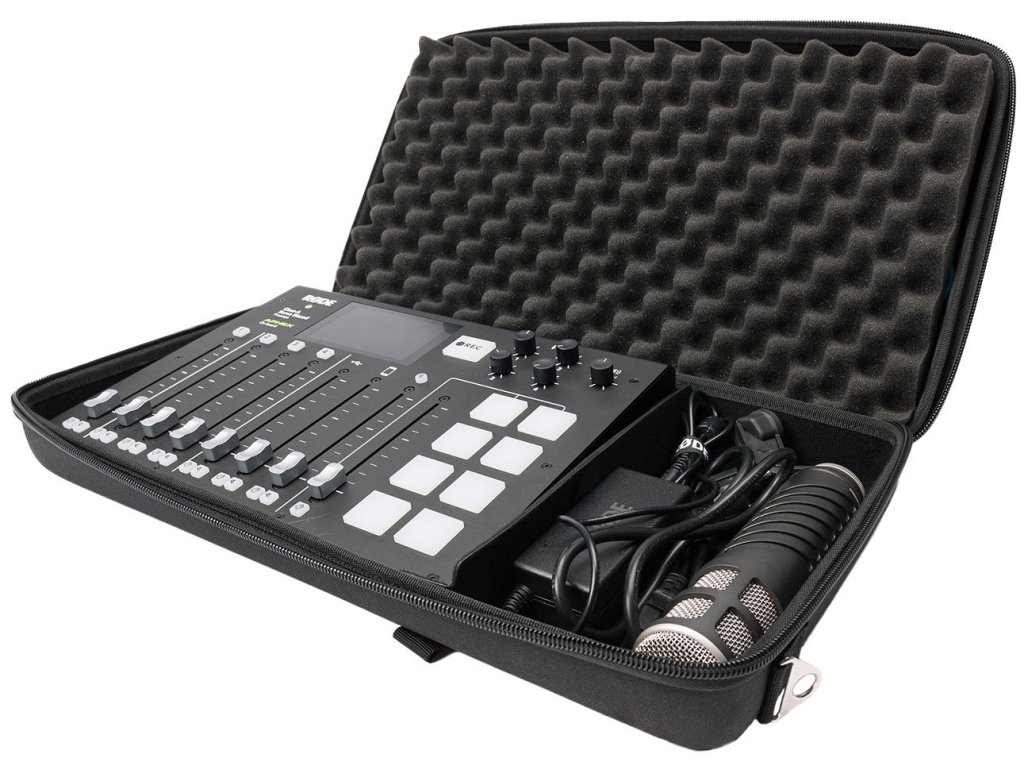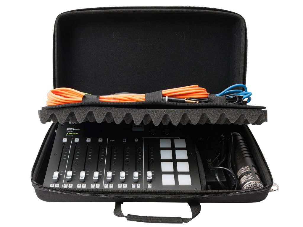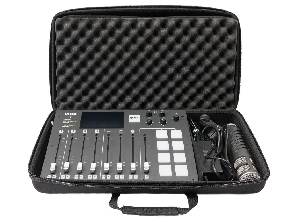 CTRL Rødecaster Pro został zaprojektowany na zamówienie, aby pomieścić Rødecaster Pro i jest bardzo lekkim i wygodnym rozwiązaniem do przenoszenia mobilnego studia podcastowego. Wykonany z sztywnej, formowanej ciśnieniowo skorupy EVA Durashock i wnętrza z pianki o wysokiej gęstości, dodatkowo wyposażony w dzieloną komorę główną i panel akcesoriów do uporządkowania kabli audio i mikrofonów.