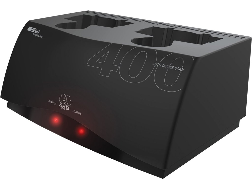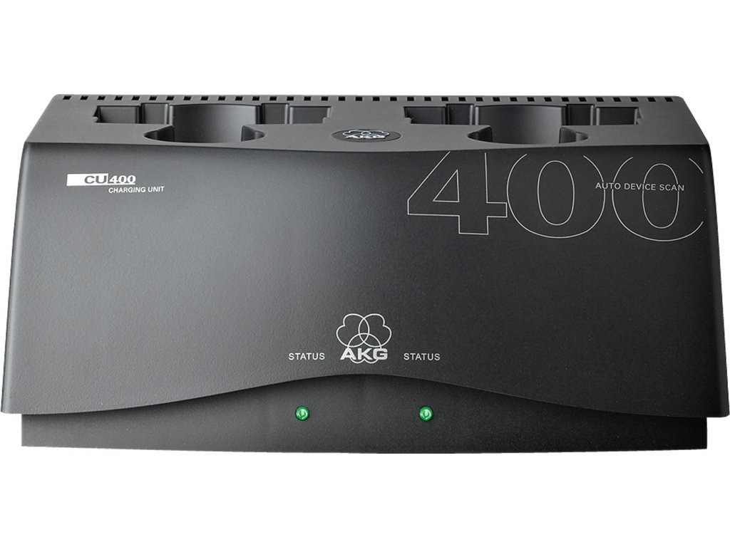 AKG CU400 to wysokowydajna ładowarka do akumulatorów serii WMS420, WMS450 i WMS470 do bezprzewodowych nadajników ręcznych, kieszonkowych i typu bodypack. Konstrukcja ładowarki i zintegrowane styki ładowania nadajnika eliminują potrzebę wyjmowania akumulatora przed ładowaniem - wystarczy wsunąć cały nadajnik wraz z akumulatorem do gniazda. Ładowarka monitoruje napięcie akumulatora i temperaturę podczas ładowania i automatycznie kończy cykl po pełnym naładowaniu akumulatora. CU400 zapewnia diodę LED stanu do pełnej kontroli stanu ładowania.