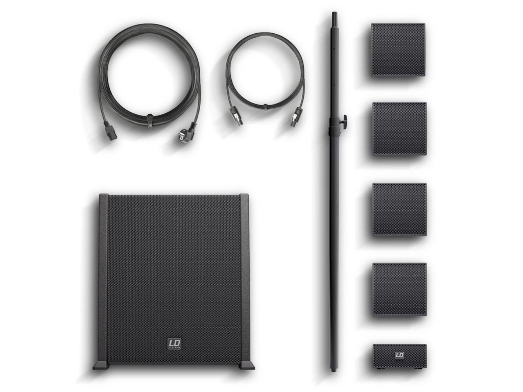LD Systems CURV 500 ES to przenośny, elegancki system modułowy. Składa się z aktywnego subwoofera połączonego z czterema satelitami. Wytrzymała lekka aluminiowa konstrukcja samonośna