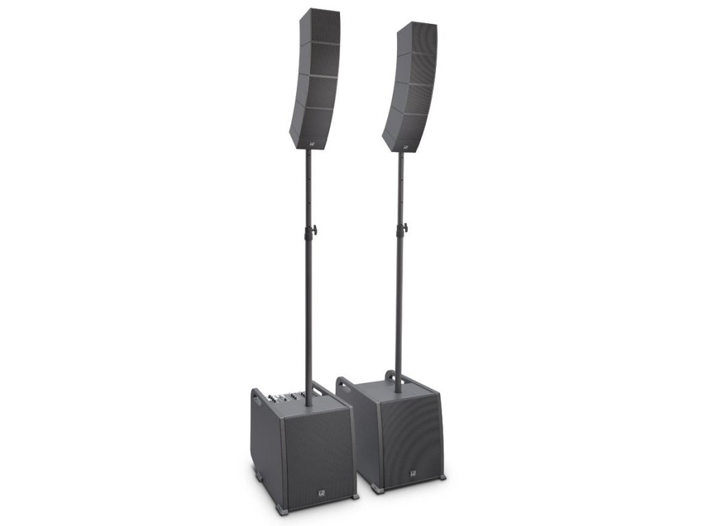 Para aktywnych, przenośnych systemów Array, w tym tycze dystansowe i okablowanie. 4-kanałowy mikser z połączeniem Bluetooth. 2 x subwoofer i 8 satelitów o łącznej mocy 920W. To wystarczająca moc z wzmocnionym basem i rezerwą na większe wydarzenia. Wszystko w kompaktowej, przenośnej obudowie o ergonomicznej konstrukcji.
