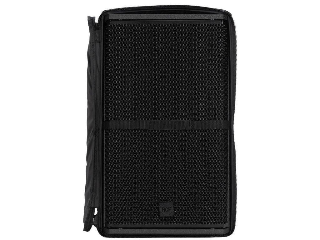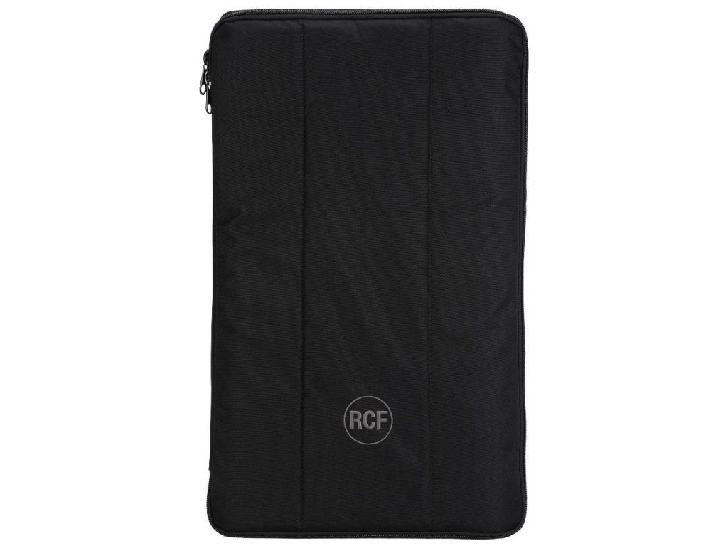 Wyściełany pokrowiec na kolumnę głośnikową RCF NX 915-A. Zawiera zewnętrzną tkaninę poliestrową odporną na warunki atmosferyczne, wyściółkę z pianki gumowej oraz otwory na klasyczny i rzep. Przednią ścianę można z jednej strony odchylić/zamknąć za pomocą rzepu. Pokrowiec zawiera kilka otworów - na uchwyty, tylny panel przyłączeniowy i tyczkę głośnikową.