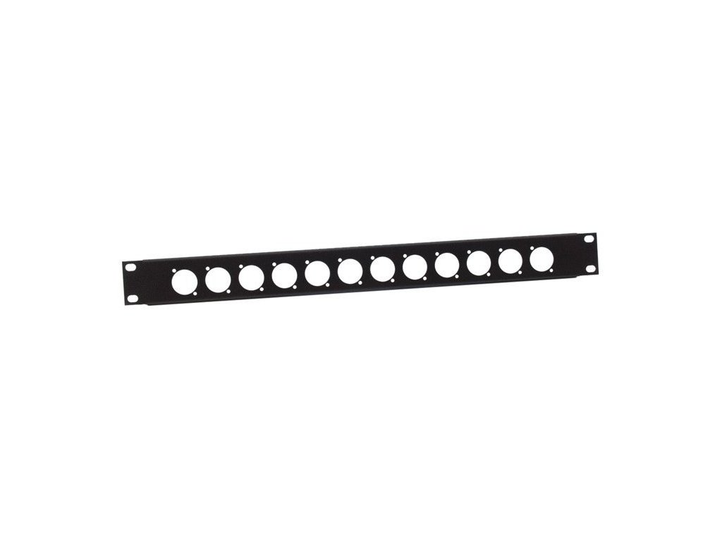 Panel rack 1 U z perforowanymi otworami na 12 uniwersalnych gniazd XLR typu "D".
