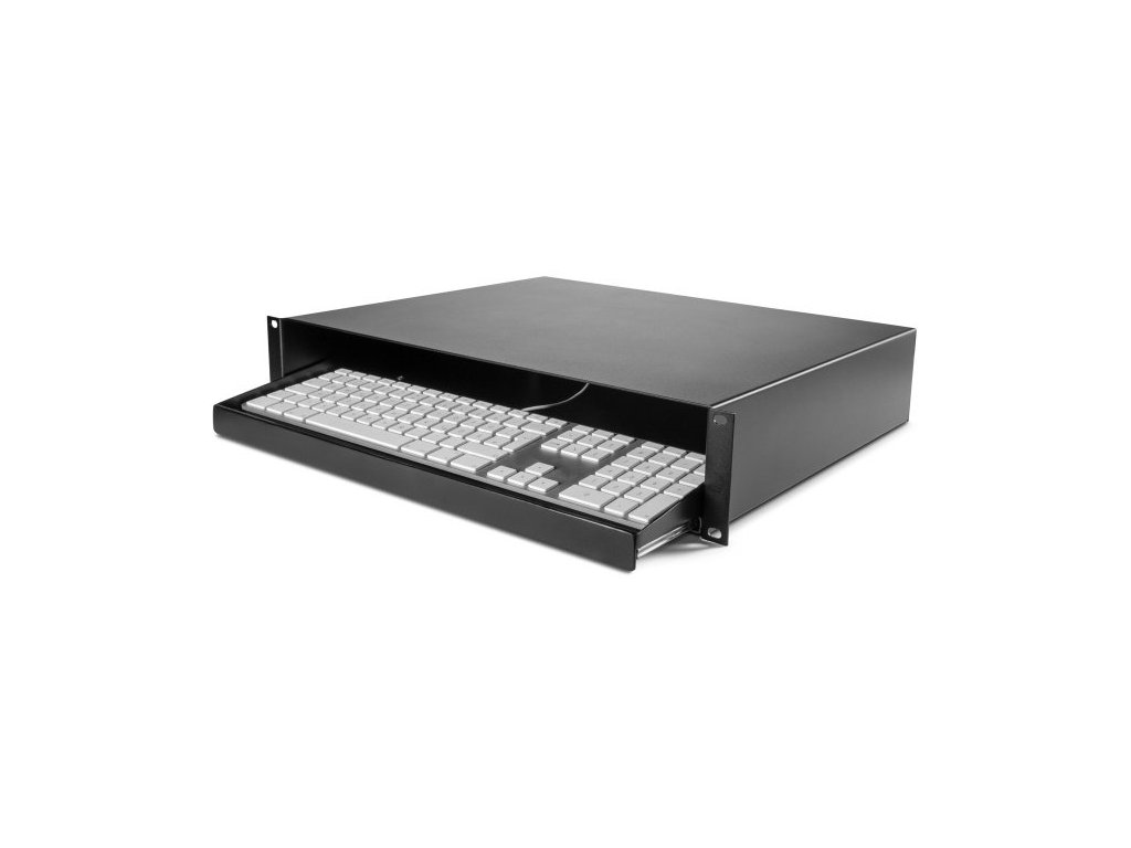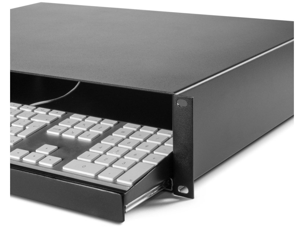Dostępne w szafie rack 19" dla klawiatur o wymiarach do 435 mm x 235 mm x 70 mm. Zawiera samoprzylepne paski do mocowania klawiatury w danej pozycji. Dostęp do kabli z tyłu przegródki.