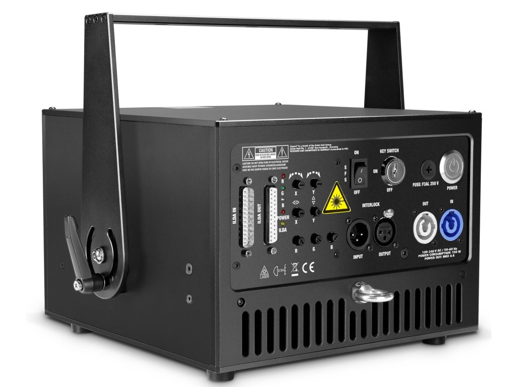 Dzięki dużej mocy całkowitej 5 000 mW, D.FORCE 5000 RGB tworzy niesamowite projekcje graficzne z modulacją analogową, aż do 16 milionów odcieni kolorów. Wysoce profesjonalny laser diodowy wyświetla ostrą wiązkę o średnicy 2 mm, zastosowanie diody 638 nm gwarantuje wysoką widoczność intensywnego czerwonego koloru. Dynamiczna konstrukcja D.FORCE 5000 RGB zapewnia wydłużoną żywotność i znacznie wyższą wydajność w porównaniu z innymi źródłami DPSS.