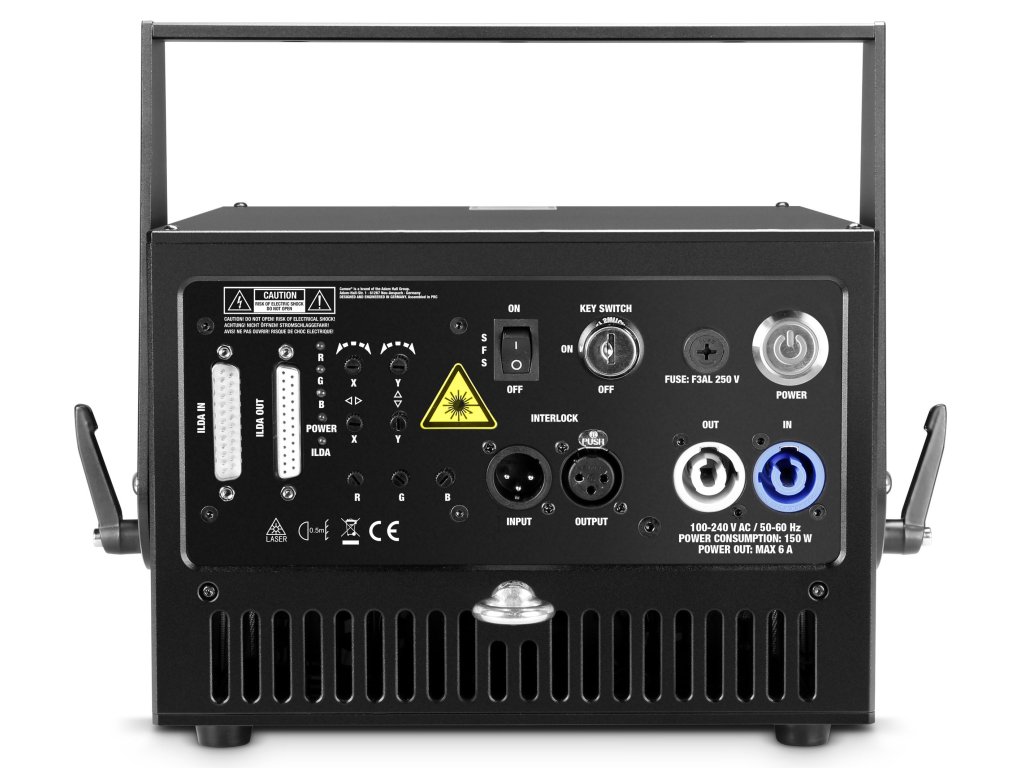 Model D.FORCE 5000 RGB jest wyposażony w szybki skaner 30 Kpps @ 8 stopni ILDA, szeroki kąt skanowania 50° oraz interfejs ILDA.