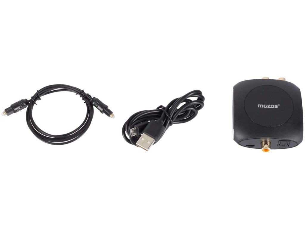 Konwerter sygnału audio Mozos DAC-N3 to doskonałe uzupełnienie każdego entuzjasty gier i filmów. Prosta instalacja i szerokie możliwości użytkowania pozwolą Ci cieszyć się źródłem rozrywki z najlepszą jakością dźwięku. Wystarczy podłączyć telewizor, odtwarzacz DVD lub konsolę do gier do konwertera, z którego wyprowadzisz sygnał do słuchawek lub głośników multimedialnych. W zestawie znajduje się kabel USB do zasilania konwertera.