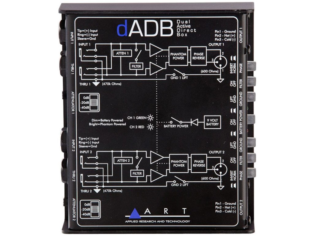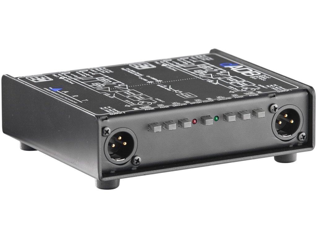 Podwójny aktywny DI box, który działa jak dwa niezależne i wysokiej jakości aktywne interfejsy do podłączania instrumentów lub linii. dADB działa na zasilaniu phantom lub za pomocą baterii 9V. Przekształca wysokoimpedancyjne symetryczne / niesymetryczne wejście w symetryczne wyjście 600 omów. Oferuje przełączany tłumik (o. -20, -40 DB), filtr dolnoprzepustowy, odwrócenie fazy i uziemienie dla każdego kanału. Masywna stalowa konstrukcja.