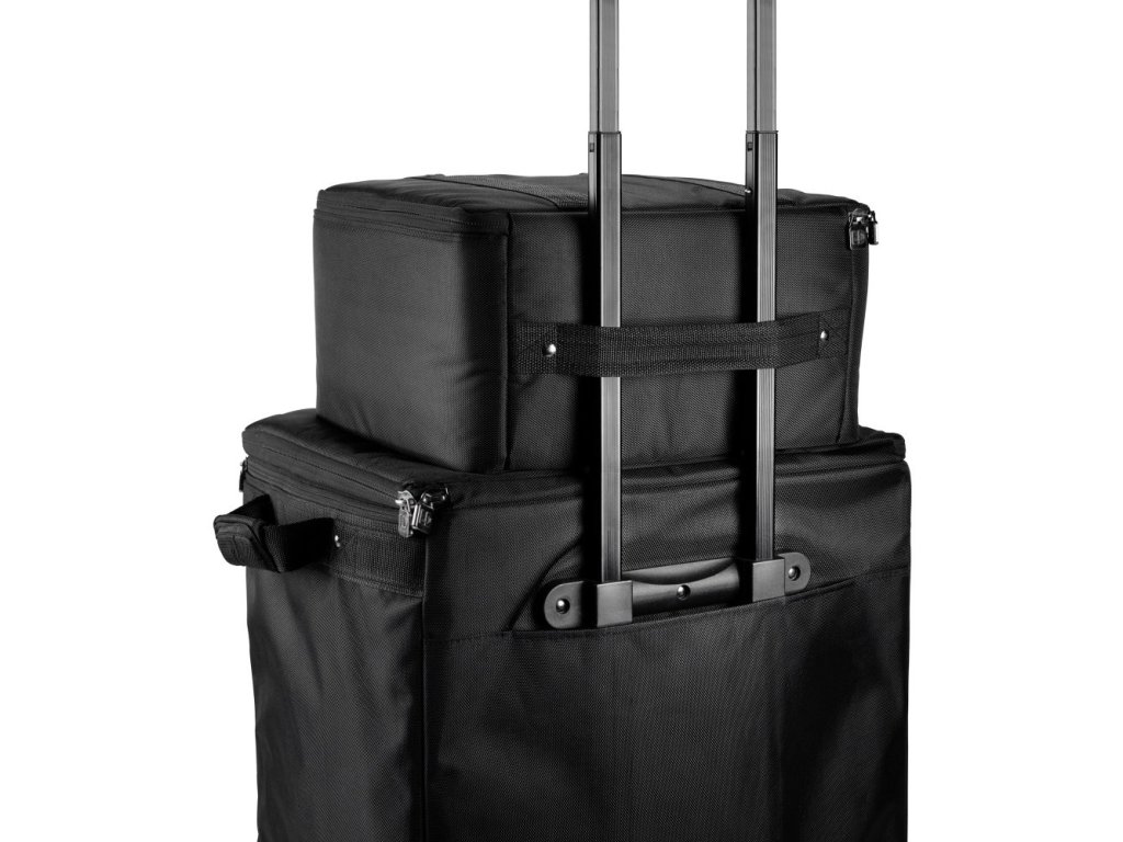 Obie torby są wyściełane i wykonane z wytrzymałego i wodoodpornego nylonu 1680D. Oznacza to, że Twój system DAVE 10 G4X jest dobrze chroniony przed uderzeniami, zadrapaniami i kurzem. Wyściełany uchwyt torby o grubości 8 mm można łatwo przeciągnąć przez wysuwany uchwyt wózka, co zapewnia bezpieczny transport i zapobiega upadkowi.