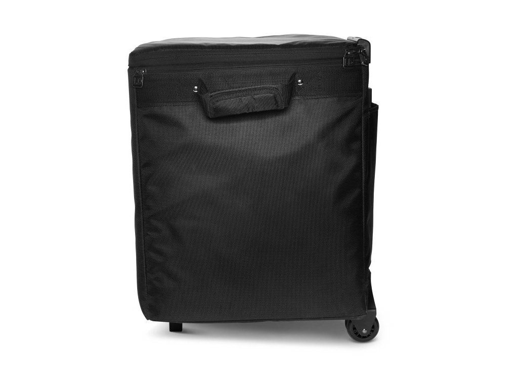 Na zewnętrznej stronie wózka znajduje się przegroda na zamek błyskawiczny do przechowywania akcesoriów, takich jak kable zasilające i kable głośnikowe.