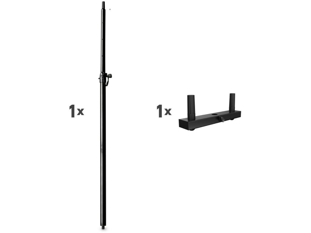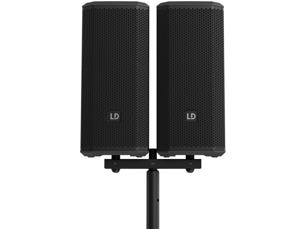 Za pomocą statywu T można zamontować dwa satelity DAVE 10 G4X blisko siebie na subwooferze. Sztyca dystansowa jest wykonana ze stali malowanej proszkowo z gwintem M20 na spodzie. Posiada stalowy kołnierz ze śrubą ustalającą i kołkiem zabezpieczającym do bezpiecznej regulacji wysokości. Dzięki prostej regulacji wysokości statyw można szybko i łatwo ustawić na żądaną wysokość i oferuje maksymalną wysokość 1,45 metra (bez subwoofera). Dolną rurę można odkręcić do długości transportowej wynoszącej zaledwie 58 cm.