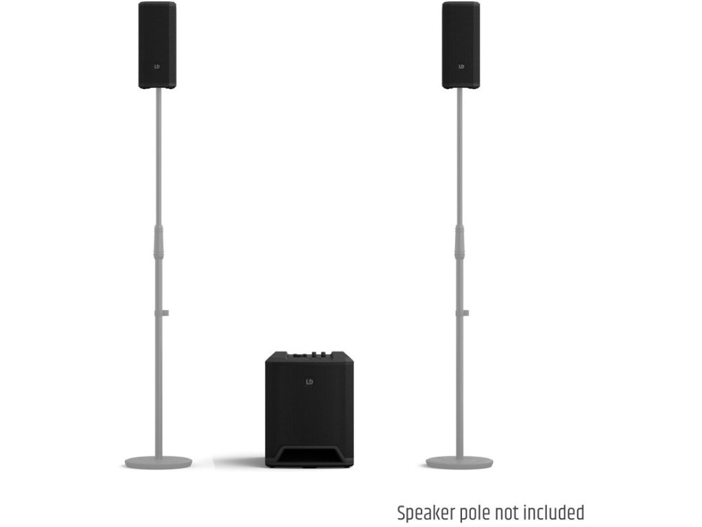 Jeśli chodzi o akcesoria, firma LD Systems pomyślała o wszystkich powszechnych możliwych zastosowaniach. Asortyment sięga od idealnie dopasowanych toreb i wózka, przez wspomniany statyw T, po statyw do montażu na słupie lub uchwyt ścienny do satelity.