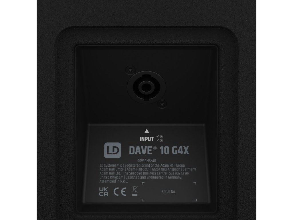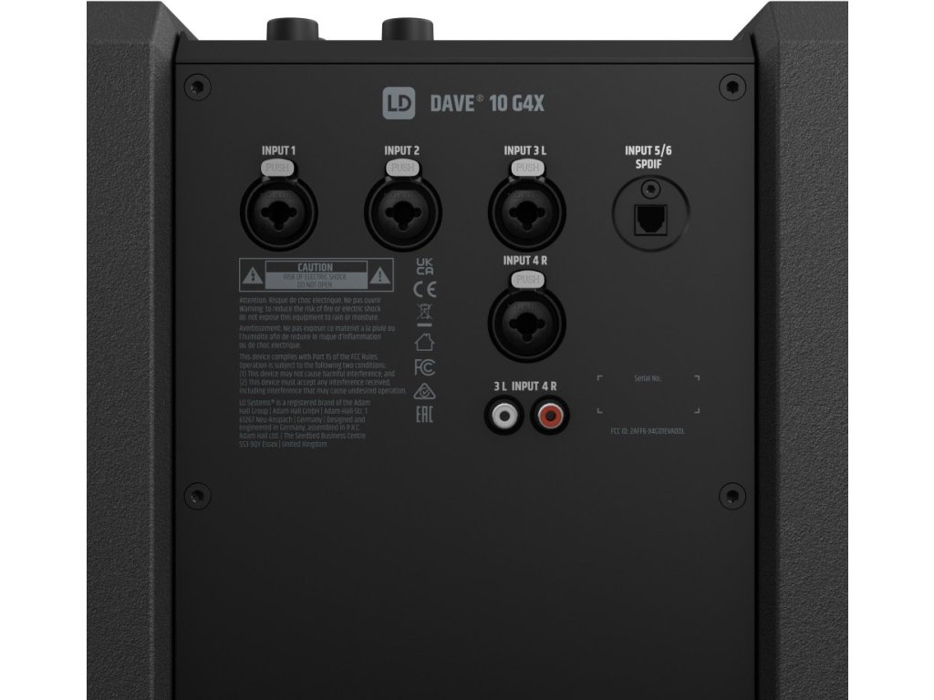 System dźwiękowy DAVE 10 G4X staje się jeszcze bardziej wszechstronny, gdy do podłączenia odtwarzacza CD, komputera lub smartfona użyjesz cyfrowego wejścia stereo SPDIF lub połączenia Bluetooth. Potrzebujesz podkładów muzycznych lub efektów dźwiękowych na swój koncert i chcesz posłuchać muzyki przed jego rozpoczęciem? Żaden problem. Wejścia (kanały 5+6) mogą być również używane do systemu karaoke lub po prostu do odtwarzania telewizji w barze z oficjalnym dźwiękiem LD.