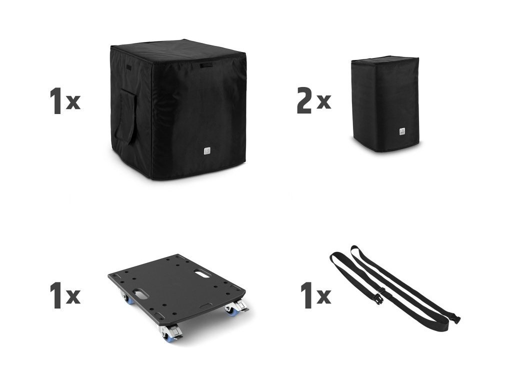Ten zestaw zawiera wszystko, czego potrzebujesz do bezpiecznego i łatwego transportu systemu DAVE 12 G4X. W zestawie znajduje się płyta rolkowa, pokrowiec ochronny subwoofera, dwa satelitarne pokrowce ochronne i pasek napinający. Wszystkie akcesoria są idealnie dopasowane do systemu DAVE 12 G4X.