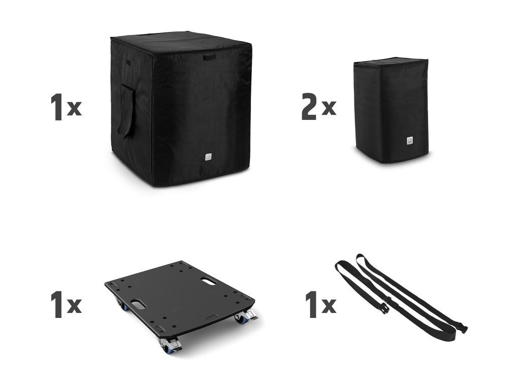 Ten zestaw zawiera wszystko, czego potrzebujesz do bezpiecznego i łatwego transportu Twojego systemu DAVE 15 G4X. W zestawie znajduje się płyta rolkowa, pokrowiec ochronny subwoofera, dwa satelitarne pokrowce ochronne i pasek napinający. Wszystkie akcesoria są idealnie dopasowane do systemu DAVE 15 G4X.