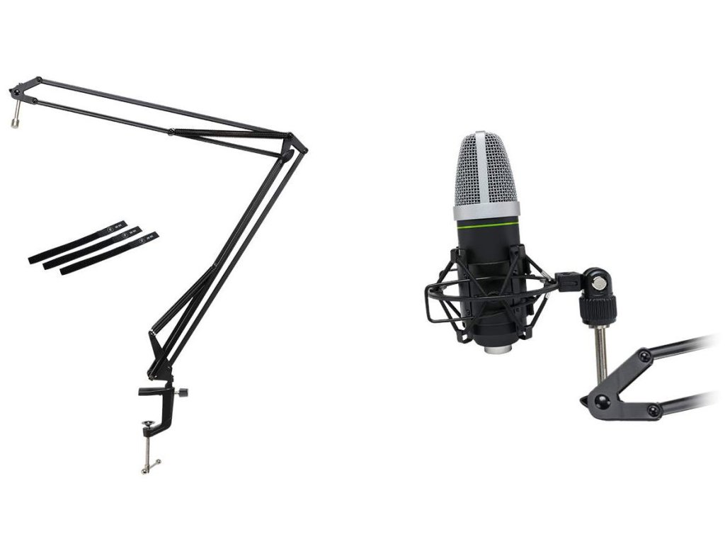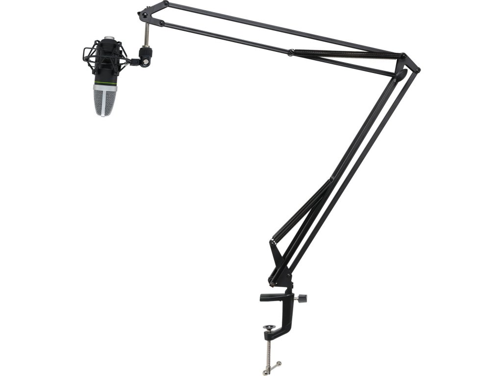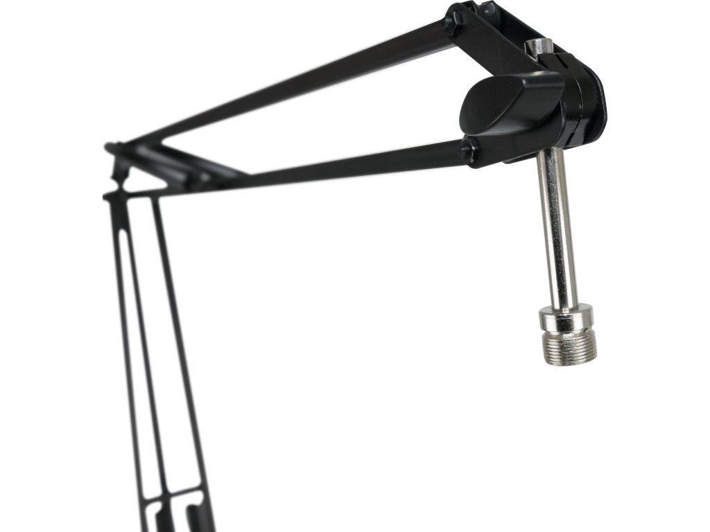 Uniwersalny statyw mikrofonowy stołowy z regulowanym ramieniem, odpowiedni do studiów nagraniowych, dla producentów, twórców audycji, Youtuberów i studenckich stacji radiowych. Statyw wykonany jest z połączenia stali, aluminium i wytrzymałego tworzywa sztucznego, a ponadto posiada obrotowe przeguby zapewniające maksymalną elastyczność. Statyw oferuje również rzepy do estetycznego umieszczenia mocowania kabla, dzięki czemu nikt nie zobaczy go na Twoim filmie. Statyw jest bardzo składny, odpowiedni do częstego transportu, do stołu przymocujesz go za pomocą gwintu 60 mm.