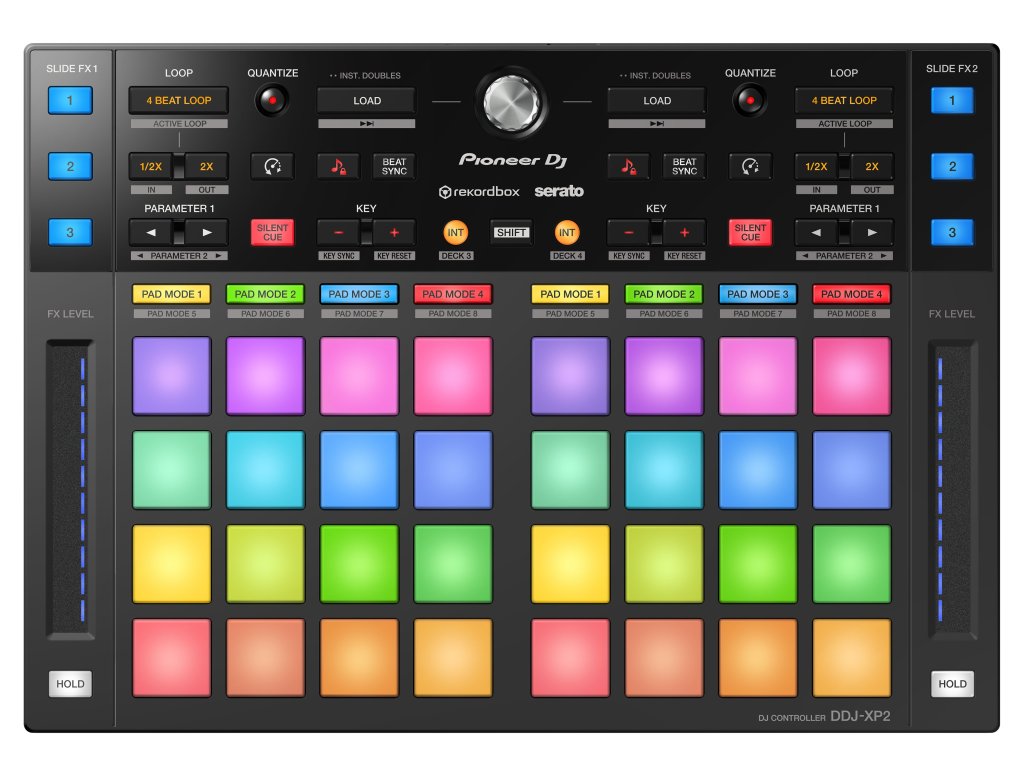 DDJ-XP2 ma na swoim ciele 32 gumowe RGB PADy, które pracują w kilku trybach. Można je również dowolnie mapować np. na Play, Pause, Cue, Pitch itp. DDJ-XP2 ma również ulubioną funkcję Silent Cue, która nowo działa także w Serato DJ.