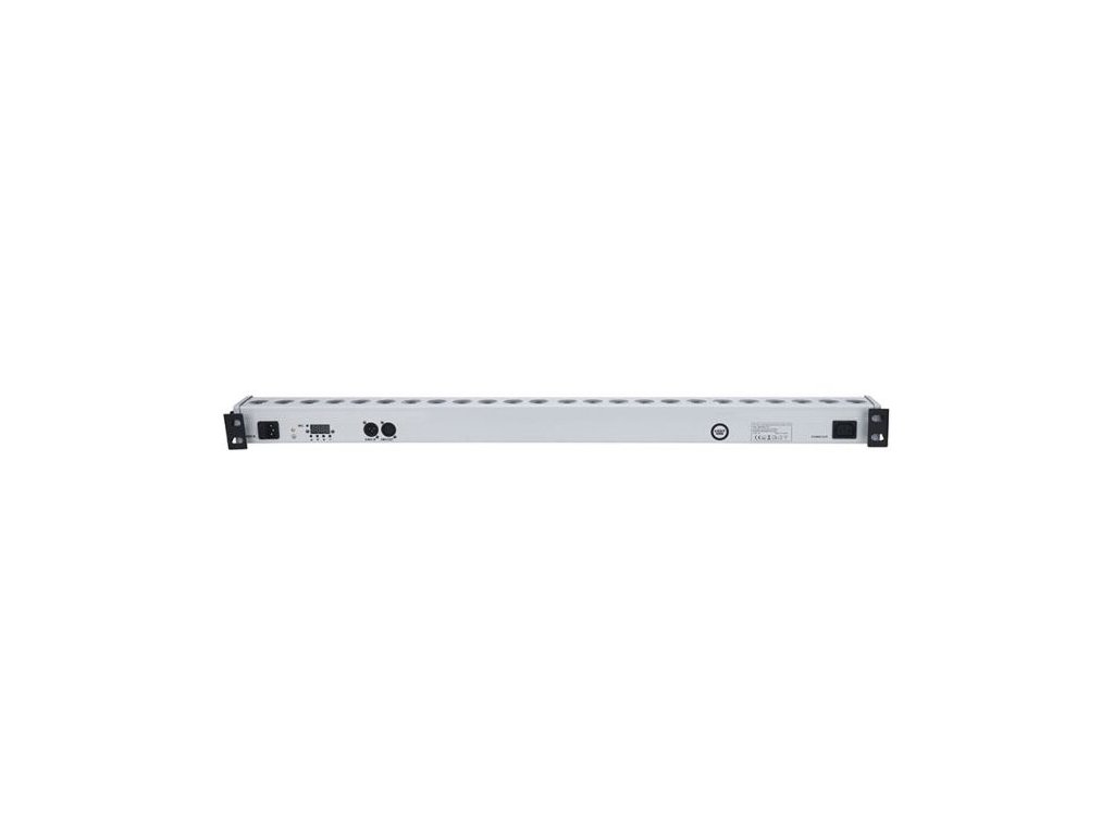 Light4Me Deco Bar 24 RGB IR WH jest wyposażony w 24 wydajne diody 3W LED (8 sekcji po 3 diody), które pracują ze światłem w palecie kolorów RGB. Tylny panel jest wyposażony w złącza zasilania IEC (IN/OUT) umożliwiające podłączenie zasilania bezpośrednio z urządzenia do urządzenia, złącza DMX (IN/OUT) oraz panel sterowania z cyfrowym wyświetlaczem i czterema przyciskami. Za ich pomocą możemy zmieniać ustawienia w menu i wybierać tryb pracy.