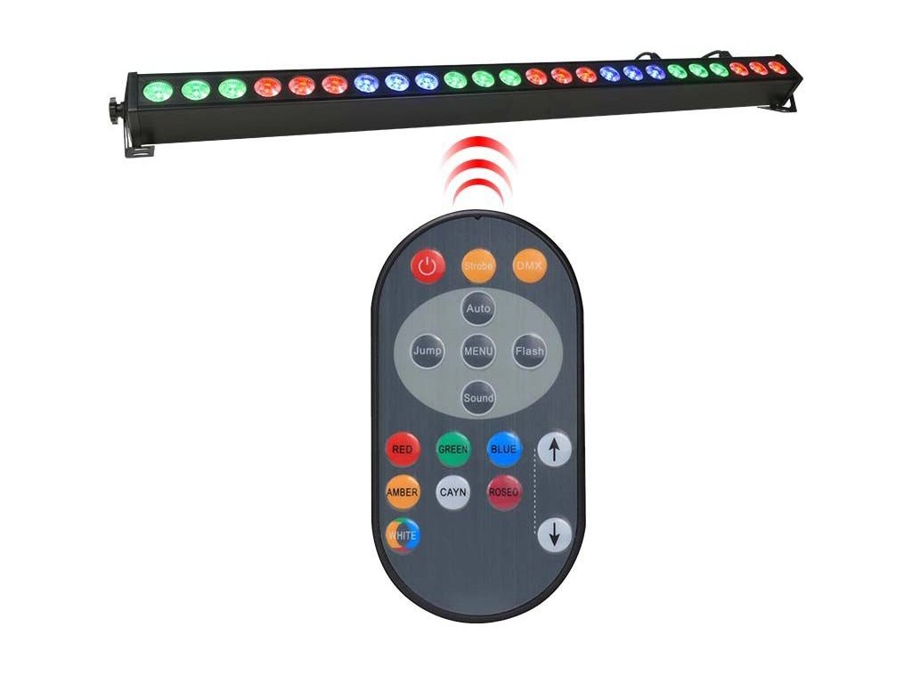 Light4Me Deco Bar 24 RGB IR to profesjonalny LED bar do dekoracji świetlnych i tworzenia efektów scenicznych z możliwością zdalnego sterowania za pomocą bezprzewodowego pilota IR. Idealnie nadaje się jako oświetlenie na koncerty, występy sceniczne, sale weselne, kluby taneczne i dyskoteki, ale także do pubów, hoteli, restauracji oraz jako oświetlenie dla DJ-ów, zespołów i firm eventowych.
