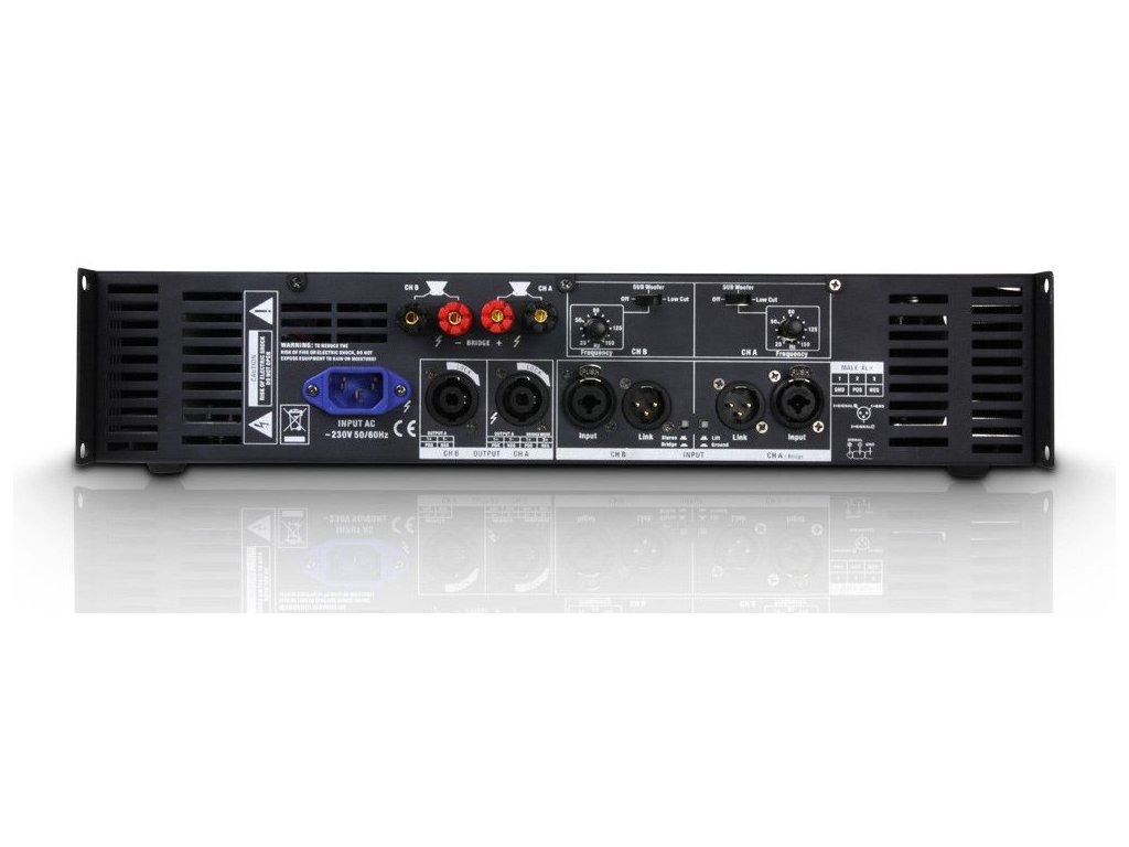 - Maks. wzmocnienie: 2x 1200 W (przy 2 Ω), 2x 950 W (przy 4 Ω), 2x 600 W (przy 8 Ω)