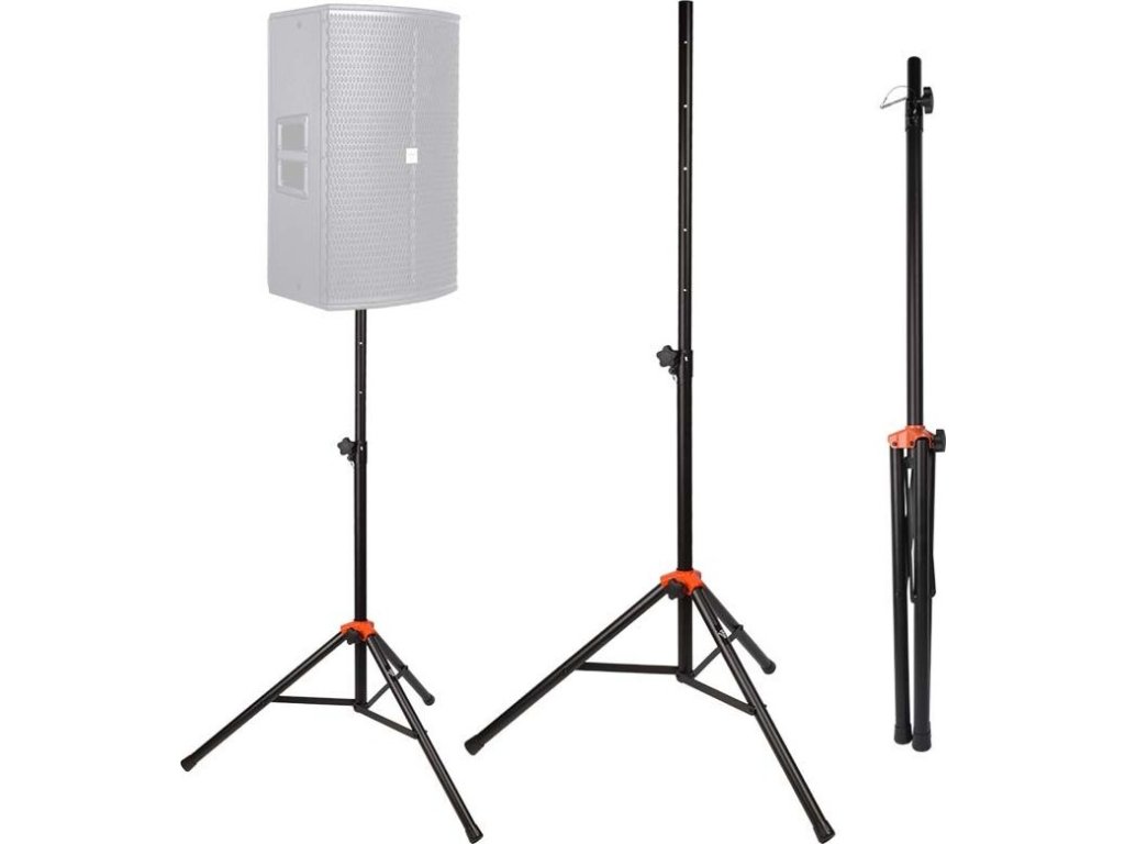 Statyw V-tone Deluxe S1 jest prawie w całości wykonany z metalu, dzięki czemu może udźwignąć obciążenie do 60 kg. Pionowy drążek posiada 5-stopniową regulację wysokości w zakresie od 120 do 190 cm, co pozwala na ustawienie głośnika lub oświetlenia na idealnej wysokości roboczej. Poprzeczny sworzeń zabezpieczający utrzymuje drążek nośny na wybranej wysokości, a dodatkowa sprężyna amortyzuje wstrząsy podczas jego opuszczania. Szeroki rozstaw nóg z charakterystycznym pomarańczowym stalowym pierścieniem i gumowymi antypoślizgowymi stopkami zapewnia, że statyw jest bardzo wytrzymały i stabilny na każdym rodzaju podłoża.