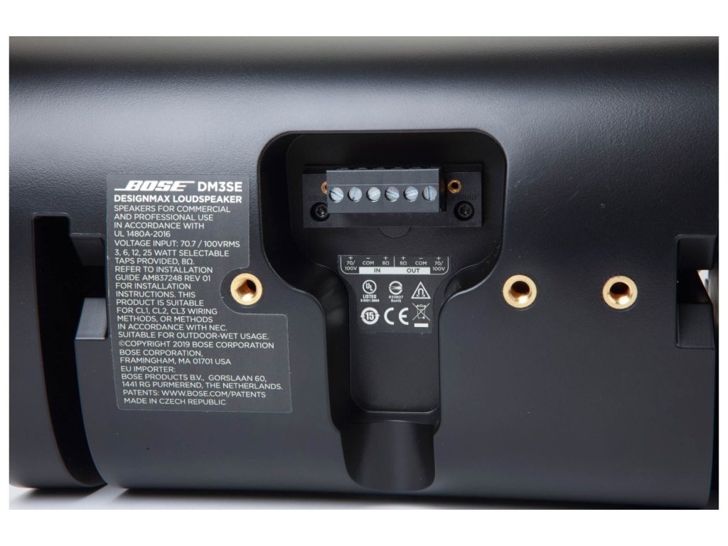 Bose DM3SE jest wyposażony w dwukierunkowy 3,5-calowy głośnik niskotonowy i 0,75-calowy współosiowy głośnik wysokotonowy zamontowany w systemie Dispersion Alignment, który zapewnia zakres częstotliwości 75 Hz - 20 kHz.