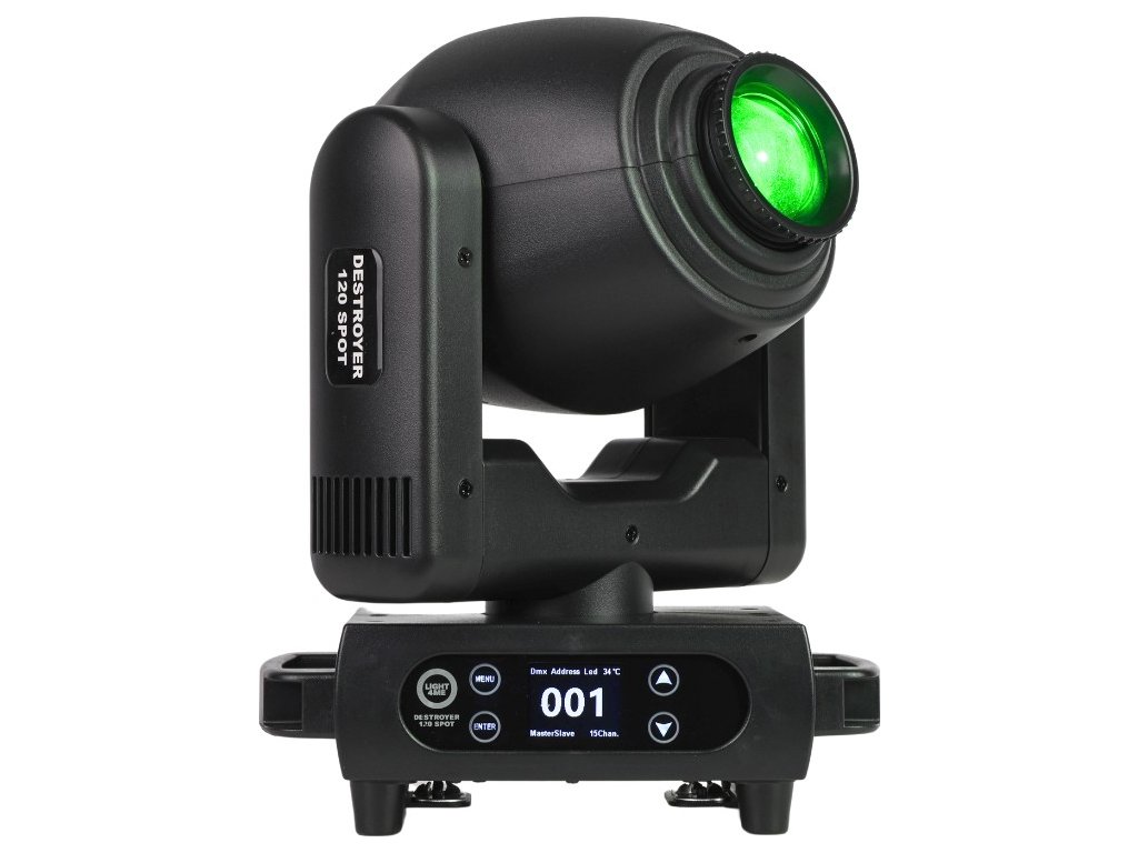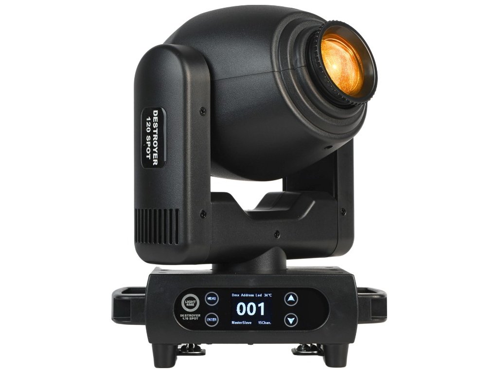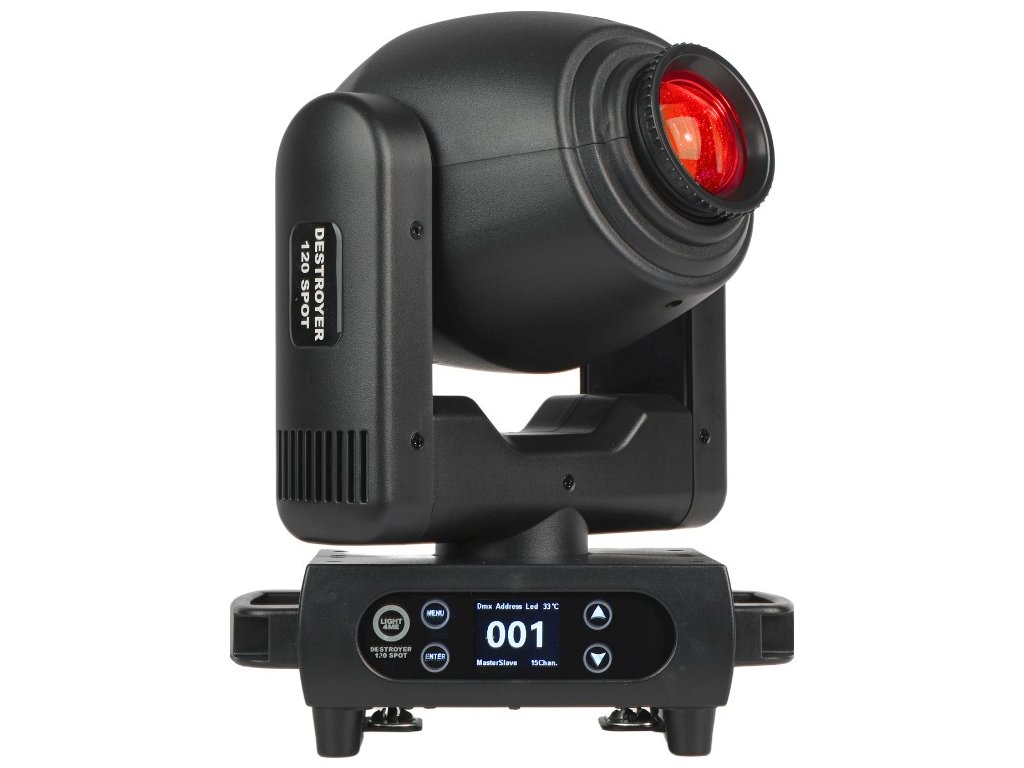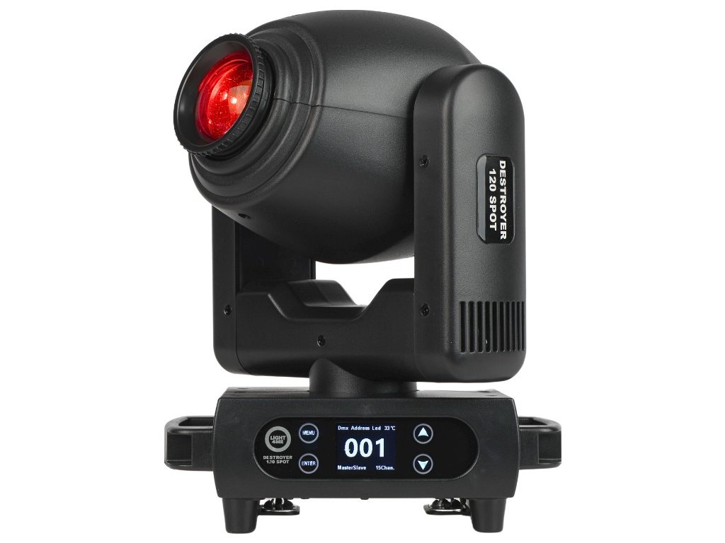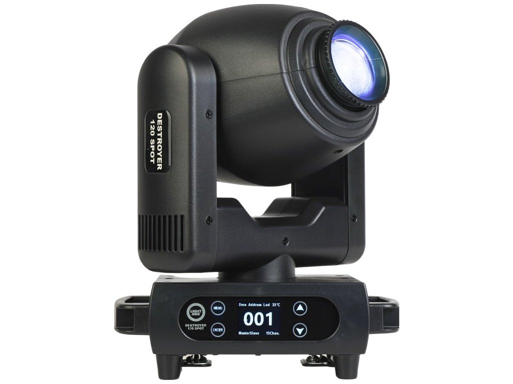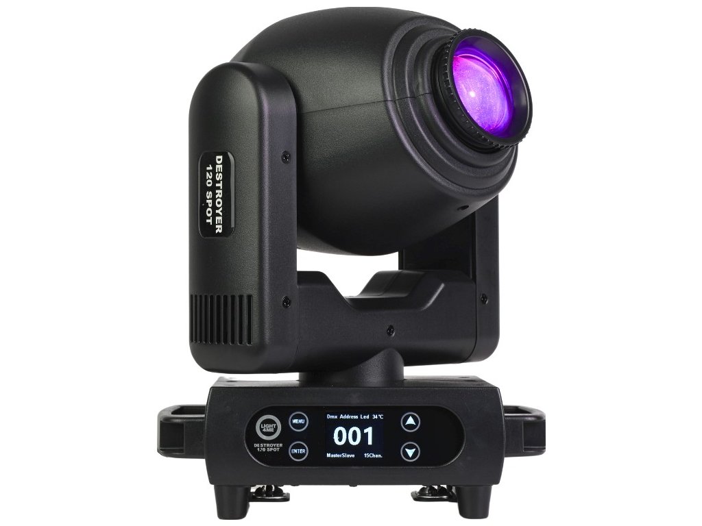 Light4Me Destroyer 120W Spot to wysokiej jakości, profesjonalna głowica obrotowa typu spot, która wykorzystuje mocną diodę LED o imponującej mocy 120 watów i wąskim kącie świecenia, który można regulować w zakresie 11-17° dzięki manualnemu systemowi zoom Urządzenie jest doskonałym wyborem dla agencji eventowych, mobilnych DJ-ów i zespołów poszukujących spektakularnego oświetlenia na Sylwestra, wesela, osiemnastki, studniówki i inne imprezy okolicznościowe Świetnie sprawdza się również jako oświetlenie sceniczne podczas występów, koncertów, gal, pokazów, w centrach kultury, dyskotekach i klubach tanecznych.