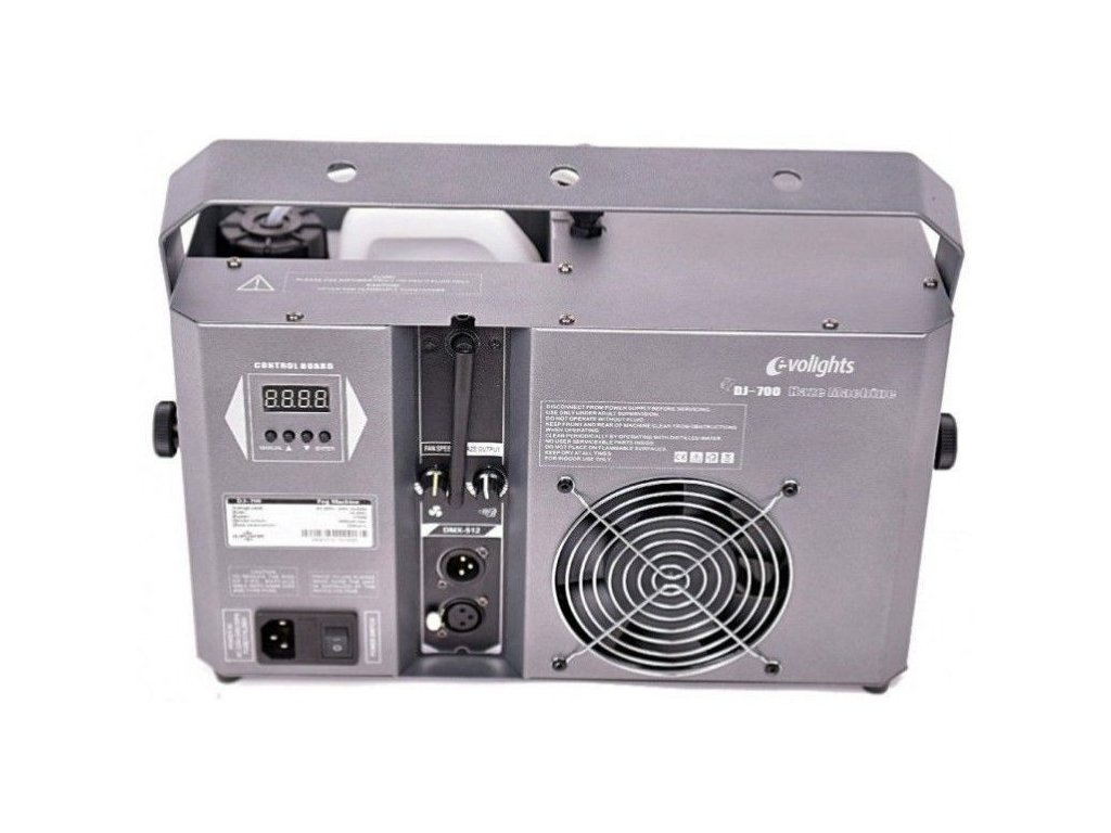 EVOLIGHTS DJ 700 to wytwornica mgły typu fazer ze zdalnym sterowaniem bezprzewodowym i DMX. Ta kompaktowa wytwornica waży zaledwie 6 kg. Do wytwarzania mgły używany jest płyn na bazie wody. Wytwornica posiada zbiornik na płyn o pojemności 3 litrów, co zapewnia ponad 11 godzin ciągłej pracy bez konieczności uzupełniania. Fazer posiada funkcję szybkiego nagrzewania, regulowaną cichą pracę wentylatora oraz regulację wydajności mgły od 0 do 100%. EVOLIGHTS DJ-700 to idealna wytwornica typu fazer do klubów, dyskotek i średniej wielkości scen. W zestawie znajduje się również bezprzewodowy pilot zdalnego sterowania, który umożliwia sterowanie fazerem na odległość z dowolnego miejsca w pomieszczeniu (zasięg do 30 m). Oczywiście istnieje również możliwość sterowania wytwornicą za pomocą protokołu DMX.