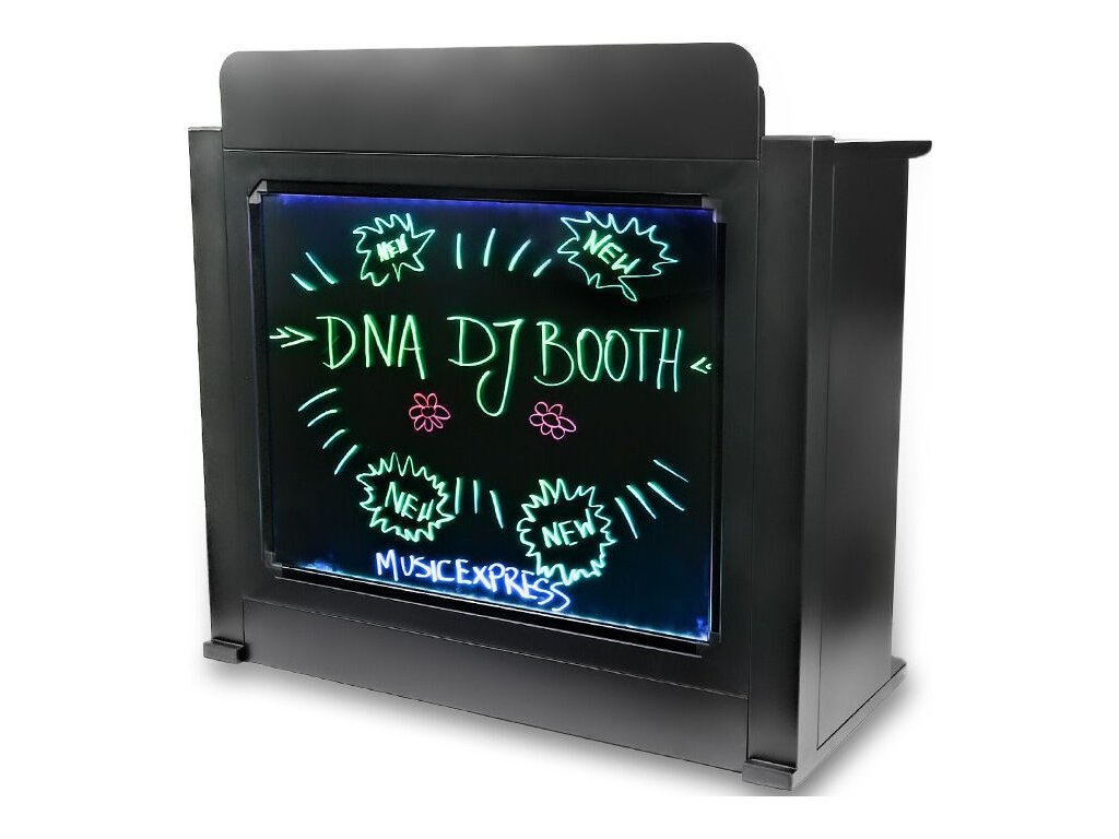 DNA DJ BOOTH BK to solidna, metalowa konstrukcja w kolorze czarnym, wyposażona w specjalny podświetlany panel, na którym można rysować dowolne kształty i napisy za pomocą dołączonych do zestawu pisaków fluorescencyjnych. Ważnym elementem jest również duży, demontowalny blat o wymiarach 99 x 49,5 cm umieszczony na wysokości 93 cm. To świetny sposób na umieszczenie miksera wraz z akcesoriami, laptopem i innymi dodatkami w jednej, kompaktowej przestrzeni. Dzięki temu DNA DJ BOOTH BK jest doskonałym rozwiązaniem dla każdego, kto podczas swoich występów wykorzystuje różnego rodzaju miksery DJ-skie, odtwarzacze, loopery, efekty audio, a nawet syntezatory i kontrolery. W blacie znajduje się specjalny otwór na kable, który umożliwia ich wygodne ułożenie i zapobiega plątaniu się. Dodatkowo, zestaw zawiera specjalną torbę wykonaną z najwyższej jakości materiału, która ułatwia wygodny transport i przechowywanie.