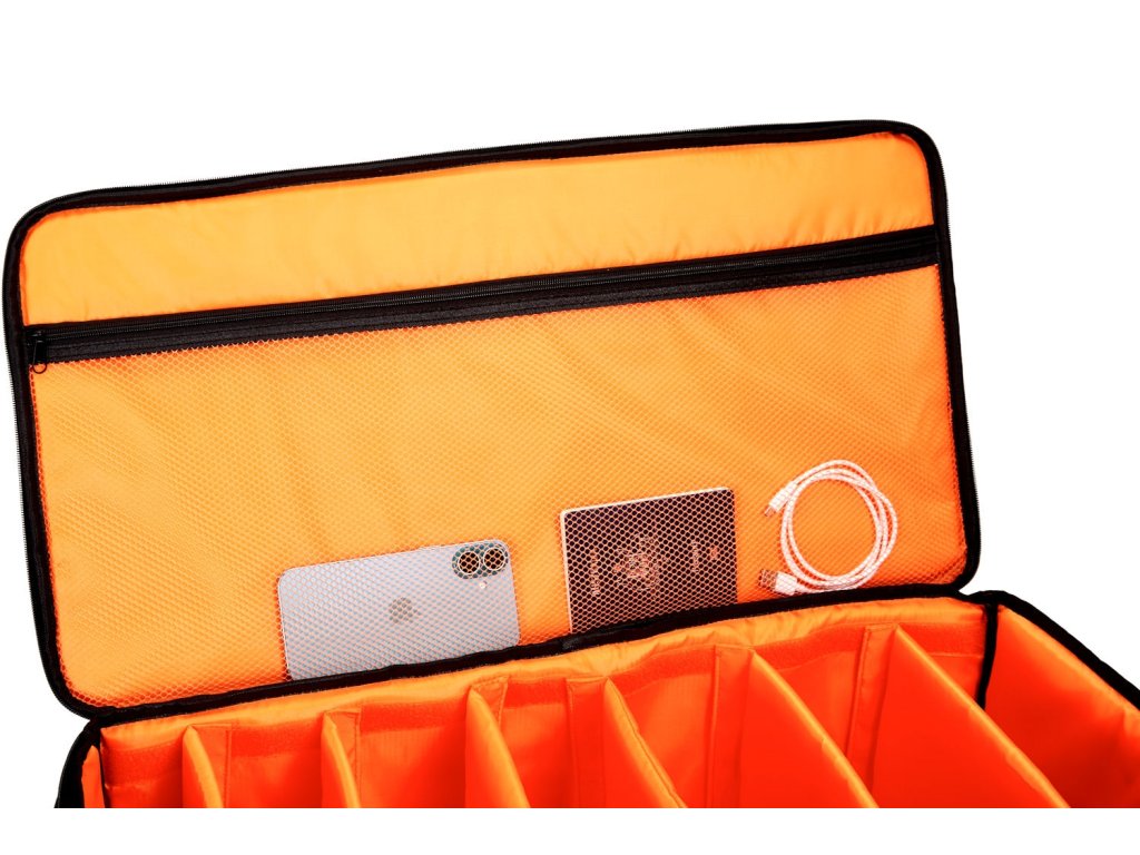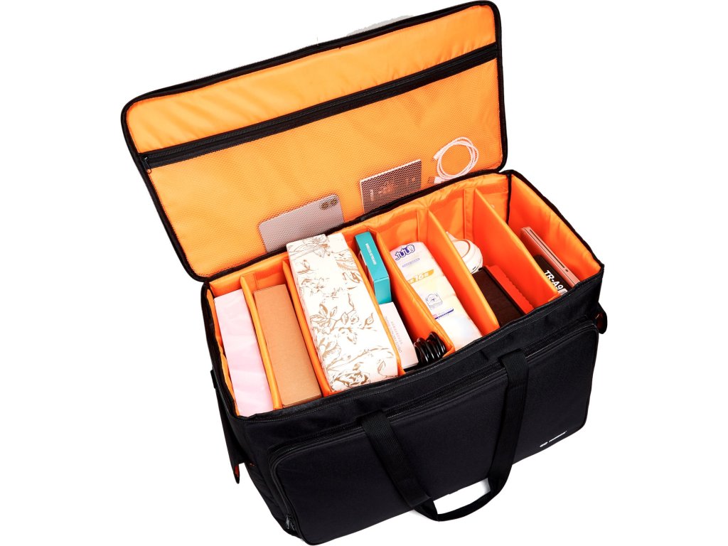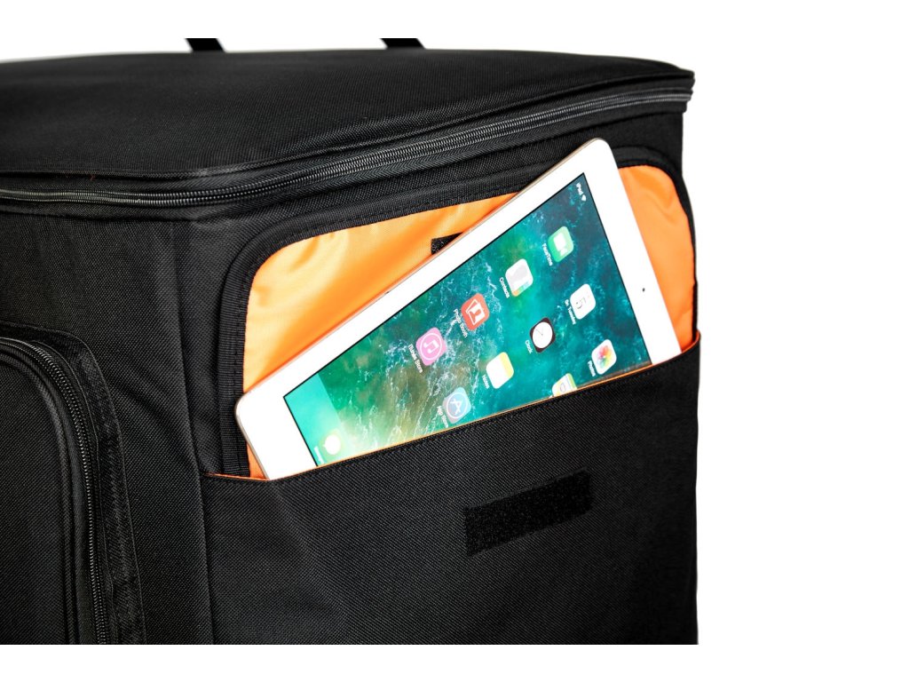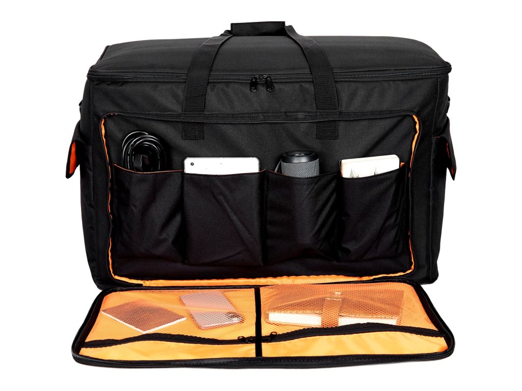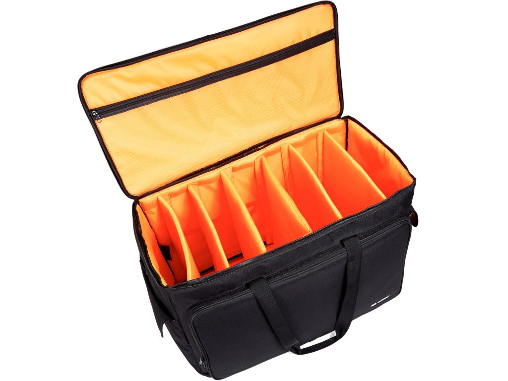 Torba oferuje przestronną komorę główną i kilka mniejszych kieszeni do przejrzystej organizacji narzędzi DJ-skich, takich jak miksery, kable, słuchawki czy mikrofony.