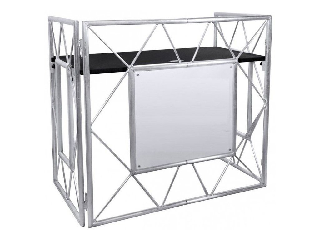 DNA DJ STAND to profesjonalny i wielofunkcyjny stół dla mobilnych DJ-ów. Posiada blat o wymiarach 127 x 61 cm i jest składany, co zapewnia łatwy i wygodny transport oraz przechowywanie. Cała konstrukcja składa się z lekkiej aluminiowej konstrukcji kratownicowej, wbudowanego szkła akrylowego (np. do umieszczenia Twojego logo) i czarnego stołu ze sklejki pokrytego welurem.