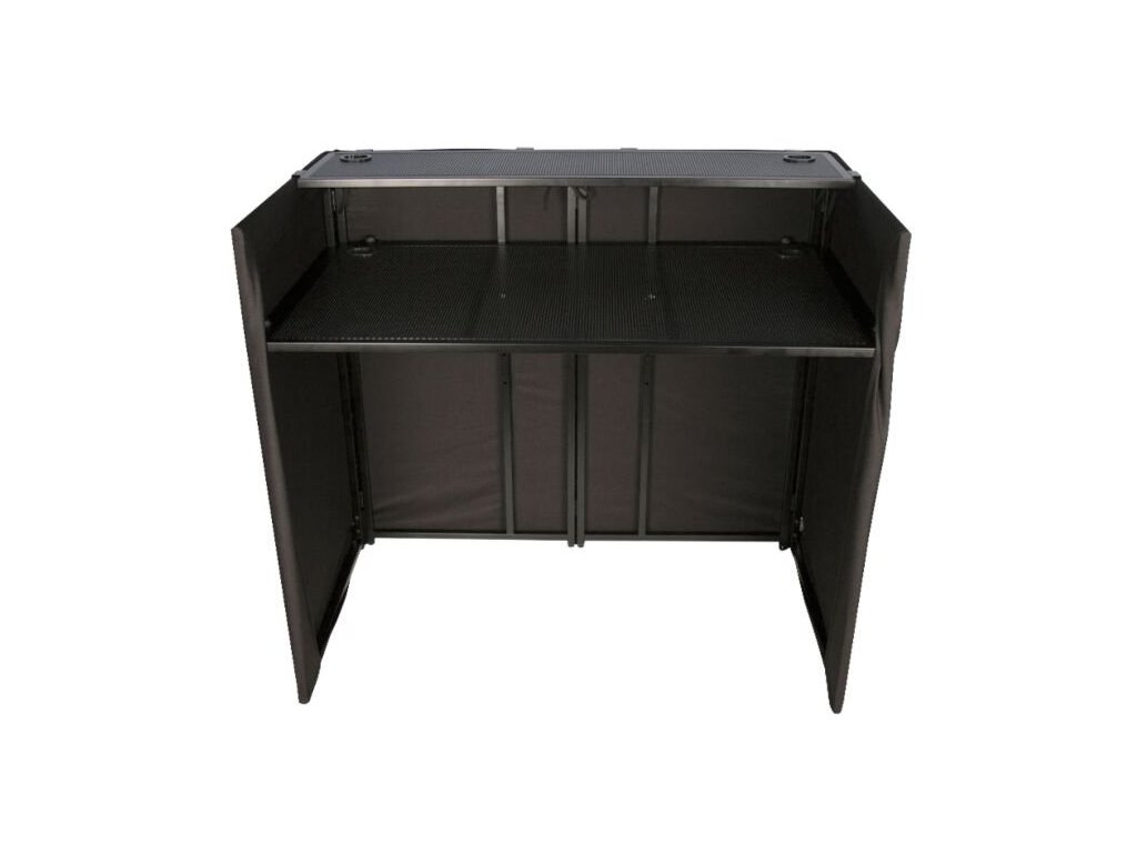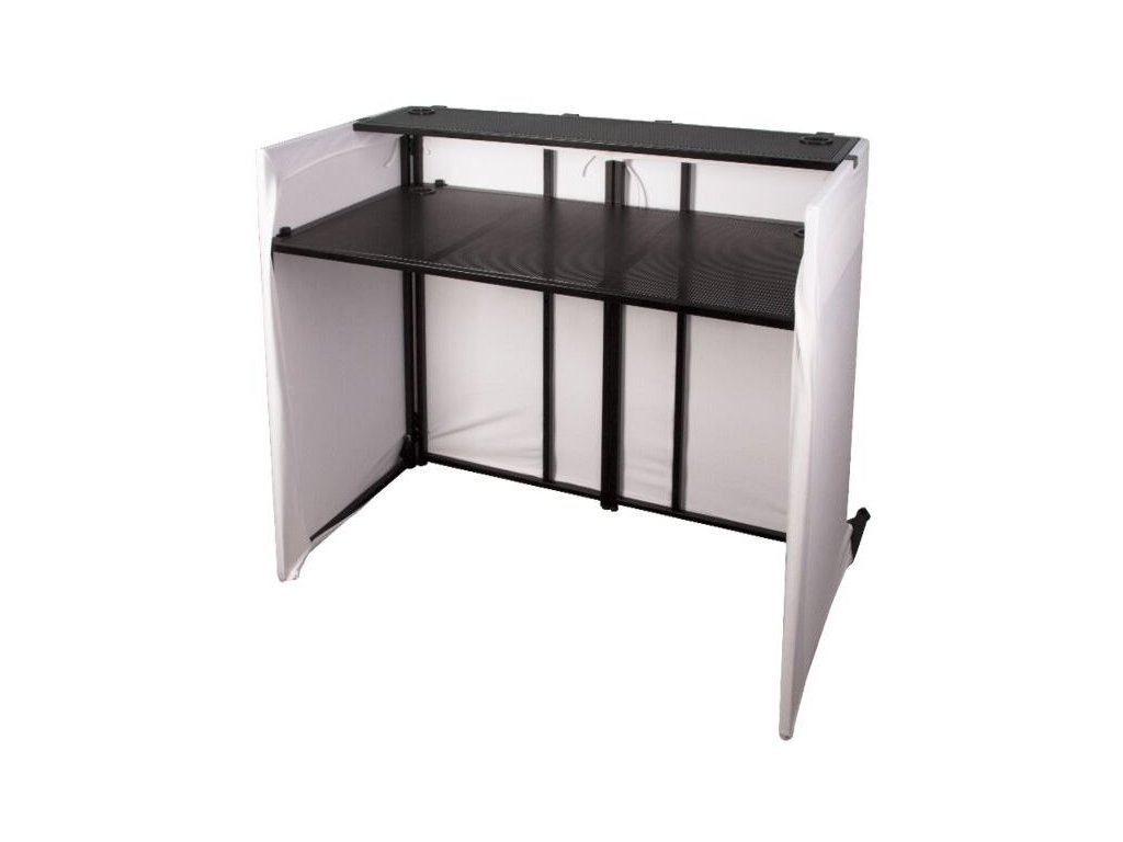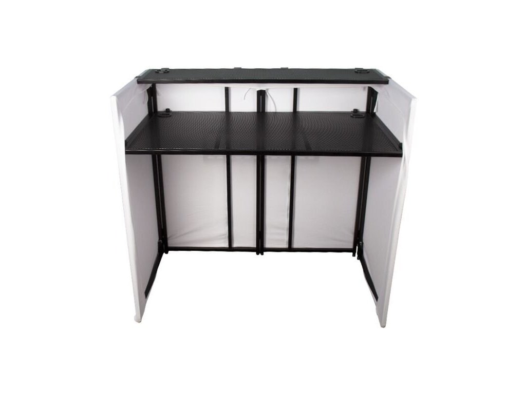 Stół DNA DJ TV SCREEN jest przeznaczony dla profesjonalnych DJ-ów i zapewnia stabilne i trwałe podparcie dla sprzętu DJ-skiego o maksymalnej nośności do 70 kg. Wykonany ze stali malowanej proszkowo, jest solidny i praktyczny, o wymiarach górnej płyty 125 x 25 cm i dolnej płyty 120 x 60 cm. Każda górna płyta zawiera dwa otwory do wygodnego prowadzenia kabli, co ułatwia organizację. Stojak posiada również uchwyt TV, który może unieść ekran o wadze do 25 kg, co umożliwia łatwą integrację elementów wizualnych z występem DJ-skim.