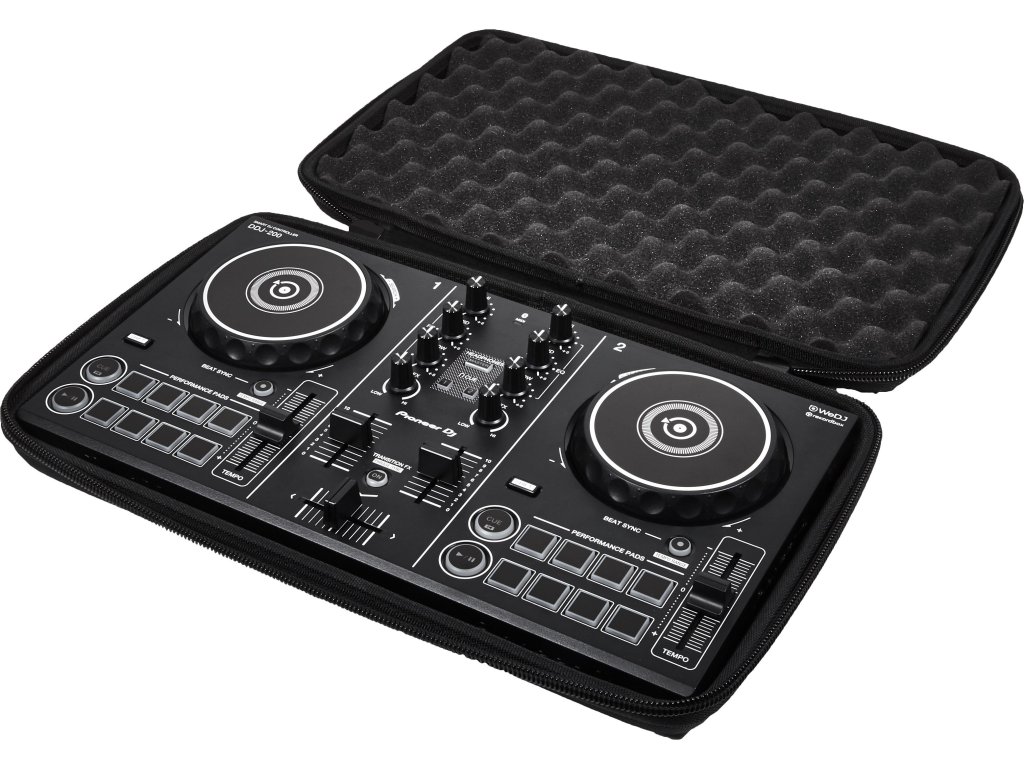 Kompaktowe etui ochronne dla kontrolera DJ Pioneer DJ DDJ-200. O ochronę przed uderzeniami i wstrząsami dba gruba pianka ochronna, zewnętrzne ścianki z ochronną gumą EVA Durashock oraz wewnętrzna wyściółka z polaru. Zewnętrzna strona jest pokryta czarnym nylonem balistycznym.