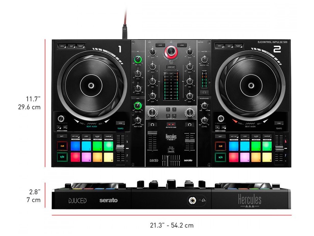 Hercules Inpulse 500 to nowy kontroler MIDI, który pomoże Ci spełnić niejedną ambicję. Stworzony dla oprogramowania Serato DJ Lite i DJUCED, dzięki któremu będziesz mógł doskonalić swoje umiejętności DJ-skie. Ma profesjonalny wygląd i solidną metalową górną płytę. Dodatkowo mnóstwo świetnych funkcji, takich jak 4 regulowane nóżki, mikser HW, filtr, efekty, czułe na dotyk jogi lub 16 podświetlanych diodami RGB PADów.
