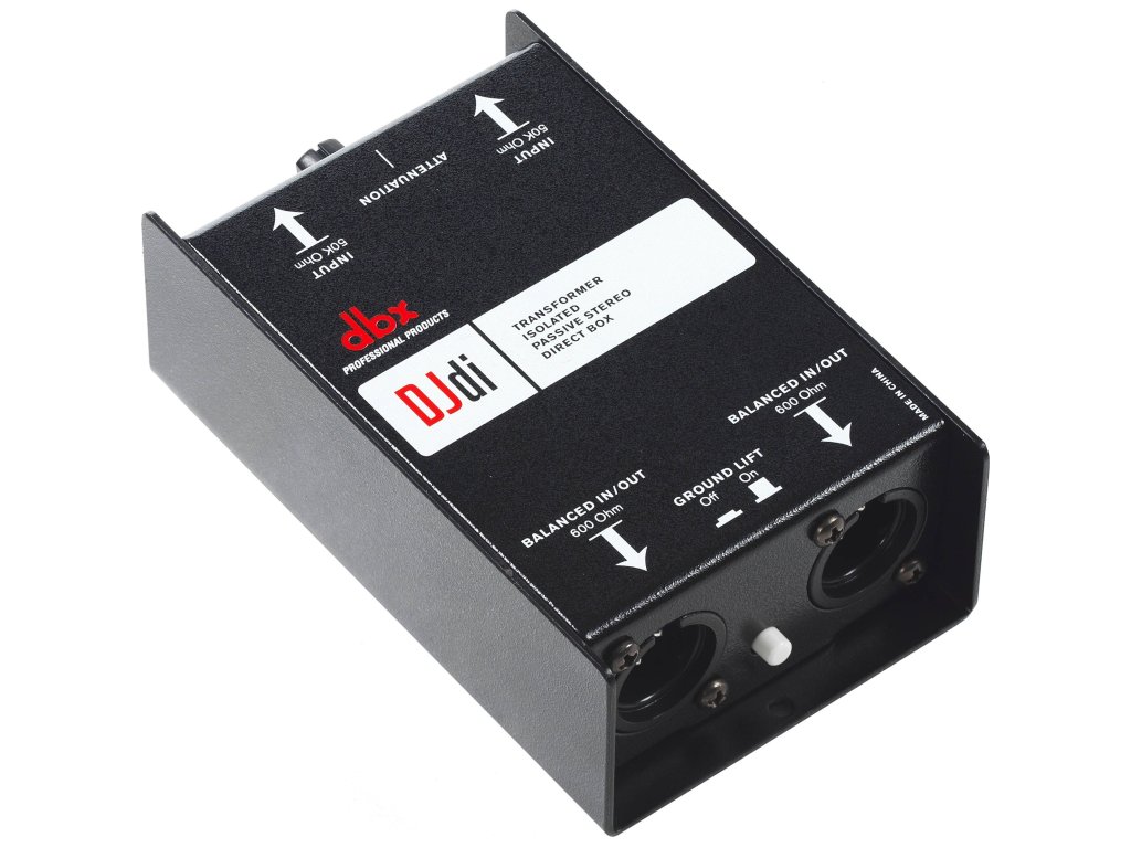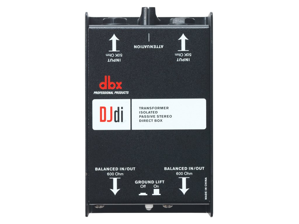DBX DJDI to pasywny DI-box z dwoma kanałami, który znajduje zastosowanie wszędzie tam, gdzie niesymetryczny sygnał z instrumentów musi zostać przekształcony w symetryczny, który lepiej współpracuje z mikserami i profesjonalnym sprzętem audio. Dzięki regulatorom poziomu wejściowego można łatwo ustawić poziom dowolnego sygnału wejściowego, a pasywny obwód nie doda do dźwięku żadnej niepożądanej koloryzacji.