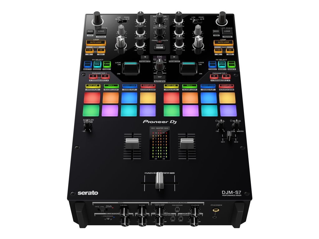 DJM-S7 zawiera wszystkie 22 efekty Beat z DJM-S11, które dodatkowo można łączyć z wbudowanymi efektami Serato DJ lub Rekordbox. Efekt można wybrać za pomocą sześciu przycisków obok łopatek i łatwo je również zmienić. Aktualnie wybrany efekt jest wyświetlany na wbudowanym wyświetlaczu OLED.