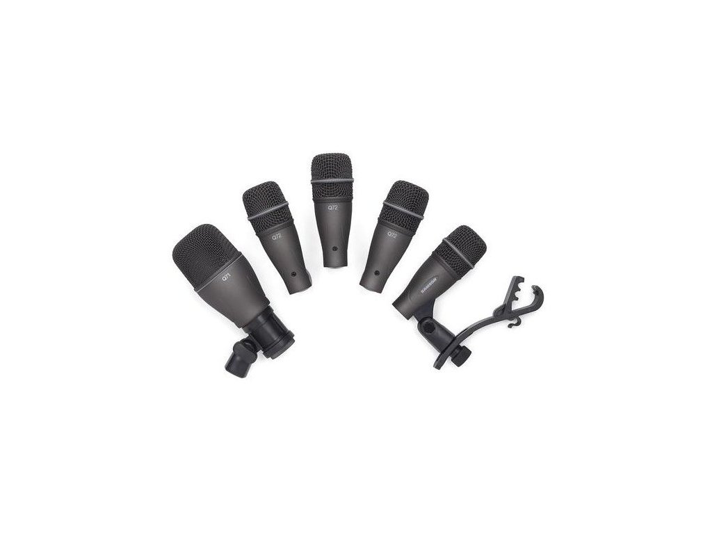 - Zestaw zawiera: 1 szt. mikrofonu Q71 do nagrywania bębna basowego, 4 szt. mikrofonu instrumentalnego Q72 do nagrywania werbla i tomów