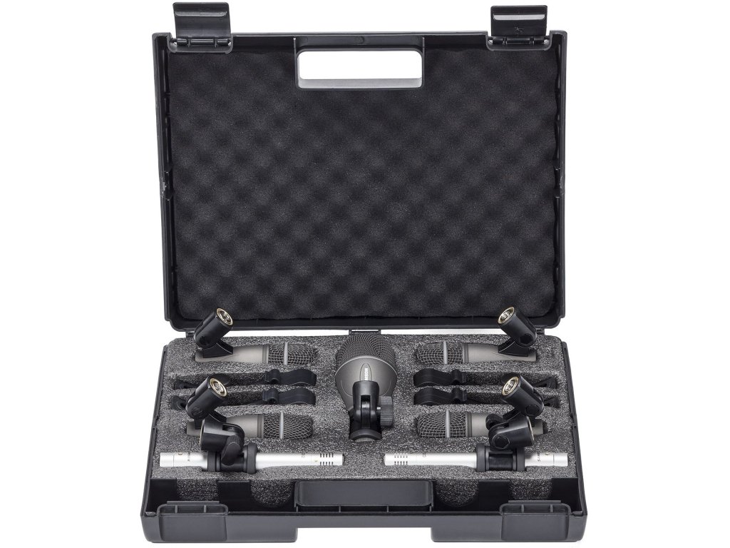 Zestaw 7 profesjonalnych mikrofonów perkusyjnych. Nadaje się do występów na żywo i pracy w studio.