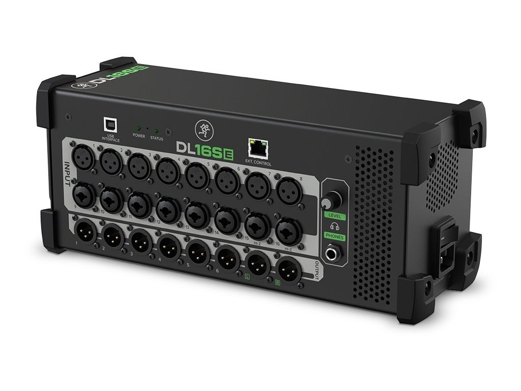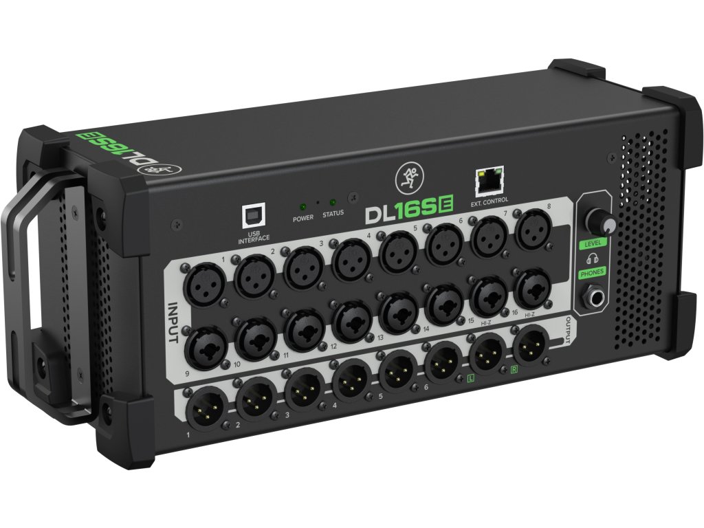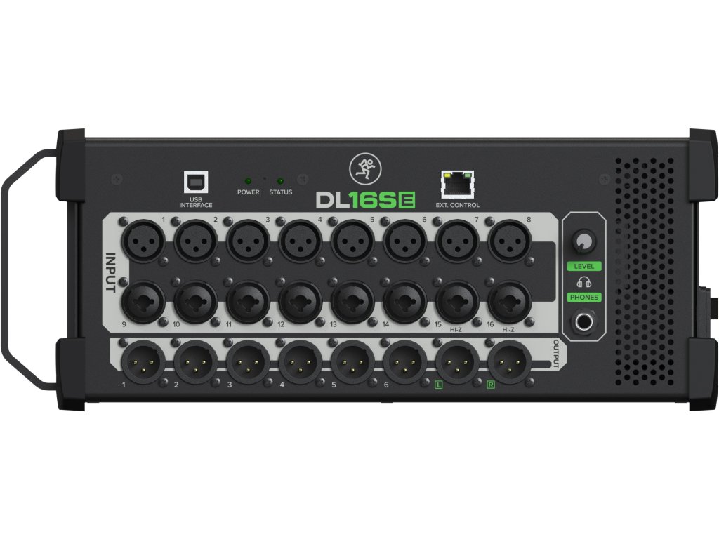 Cyfrowy mikser Mackie DL16SE jest wyposażony w 16 kanałów wejściowych z legendarnymi przedwzmacniaczami mikrofonowymi Onyx+. Połowa z nich jest wyposażona w gniazda combo, dzięki czemu oprócz mikrofonów można podłączyć do 8 kanałów liniowych, a dwa ostatnie wejścia są przeznaczone dla instrumentów (HiZ). Na wyjściu dostępnych jest 8 w pełni przypisywalnych kanałów, w tym główna para stereo i jeden kanał wyjścia słuchawkowego. Każdy kanał wejściowy jest wyposażony w 4-pasmowy parametryczny EQ i filtr HP, bramkę i kompresor. Dla kanałów wyjściowych dostępne są identyczne EQ, w tym filtry LP i HP, a także 31-pasmowy graficzny master EQ.