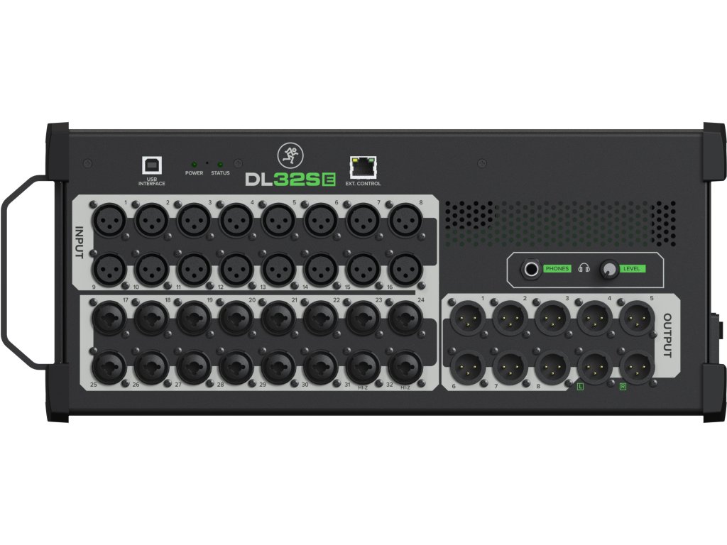 Cyfrowy mikser audio Mackie DL32SE jest wyposażony w 32 kanały wejściowe z legendarnymi przedwzmacniaczami mikrofonowymi Onyx+. Połowa z nich jest wyposażona w gniazda combo, dzięki czemu oprócz mikrofonów można podłączyć do 16 kanałów liniowych, a dwa ostatnie wejścia są przeznaczone dla instrumentów (HiZ). Na wyjściu dostępnych jest 10 w pełni przypisywalnych kanałów, w tym główna para stereo i jeden kanał wyjścia słuchawkowego. Każdy kanał wejściowy jest wyposażony w 4-pasmowy parametryczny EQ i filtr HP, bramkę i kompresor. Dla kanałów wyjściowych dostępne są identyczne EQ, w tym filtry LP i HP, a także 31-pasmowy graficzny master EQ.